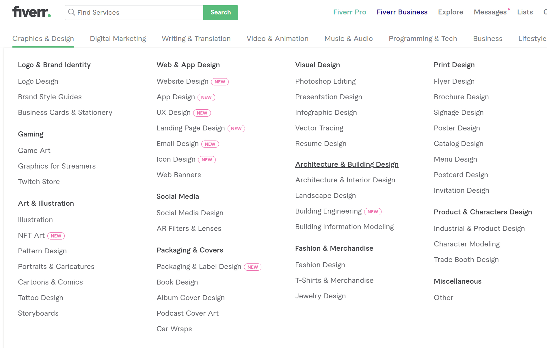 그 외에도 여러 카테고리가 있고 매우 세분화된 서비스를 제공합니다.