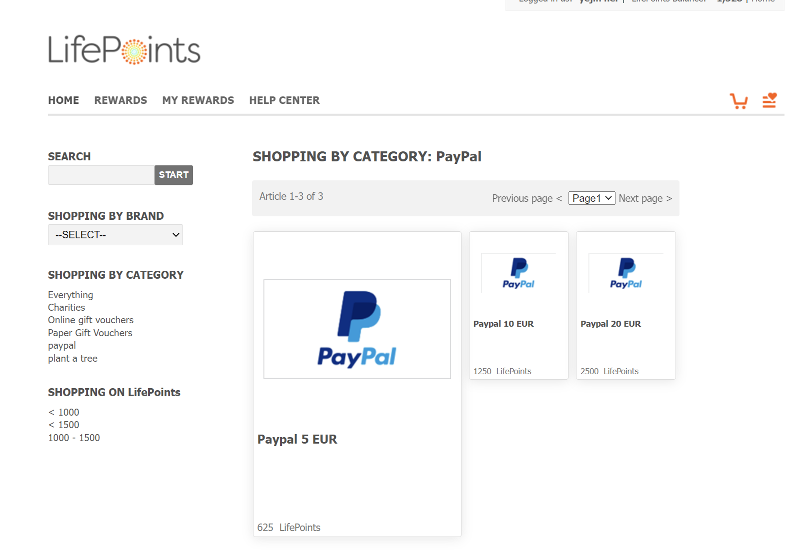 이렇게 2500포인트=페이팔 20유로 입니다.
