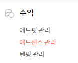 이렇게 수익탭에 애드센스 관리가 들어와있더라구요?