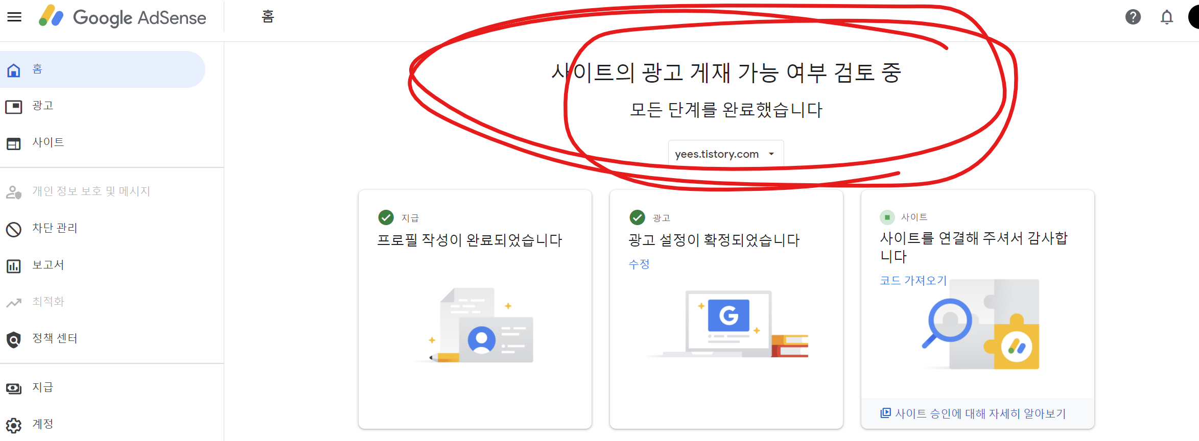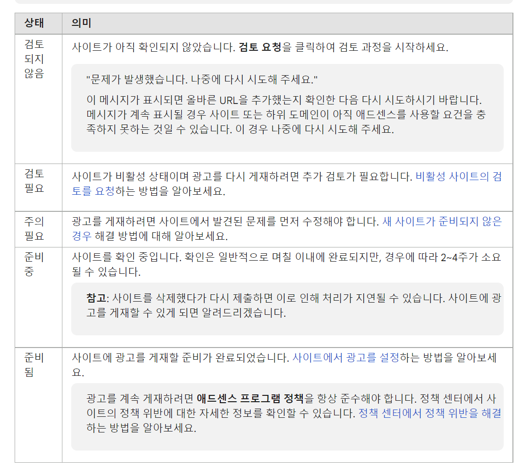 애드센스 사이트 상태 확인하기 - Google 애드센스 고객센터