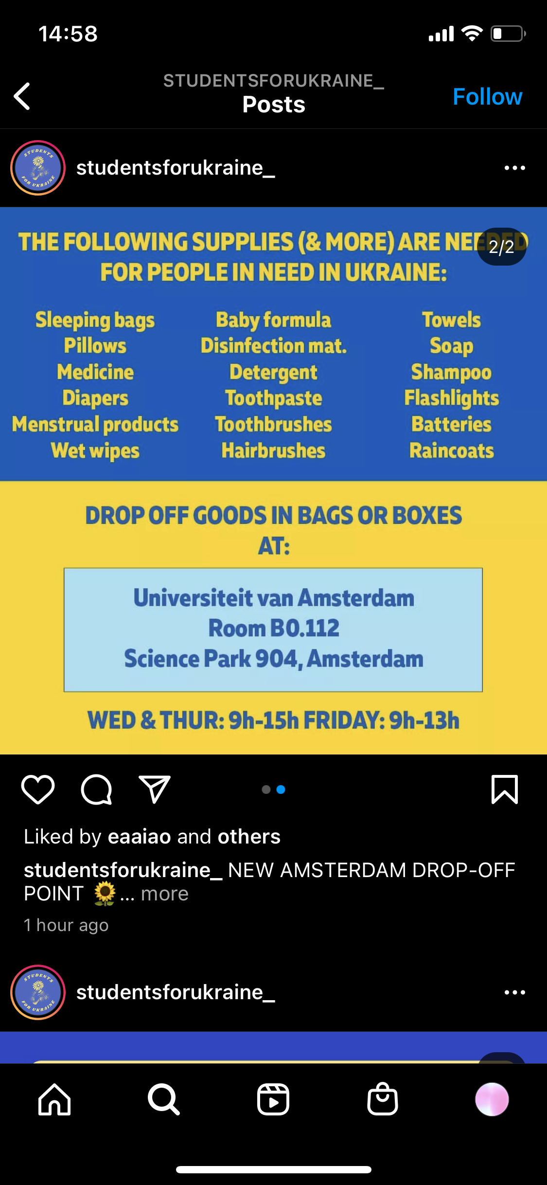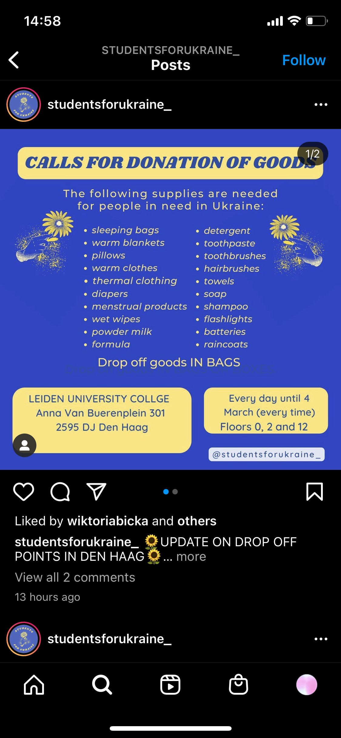 네덜란드내에서 대학생/시민들이 적극적으로 우크라이나를 돕고자