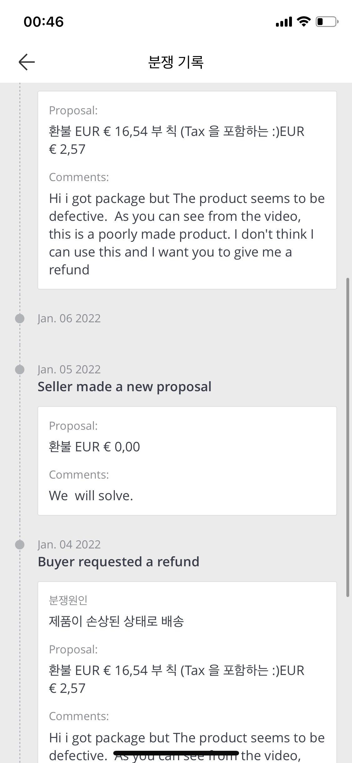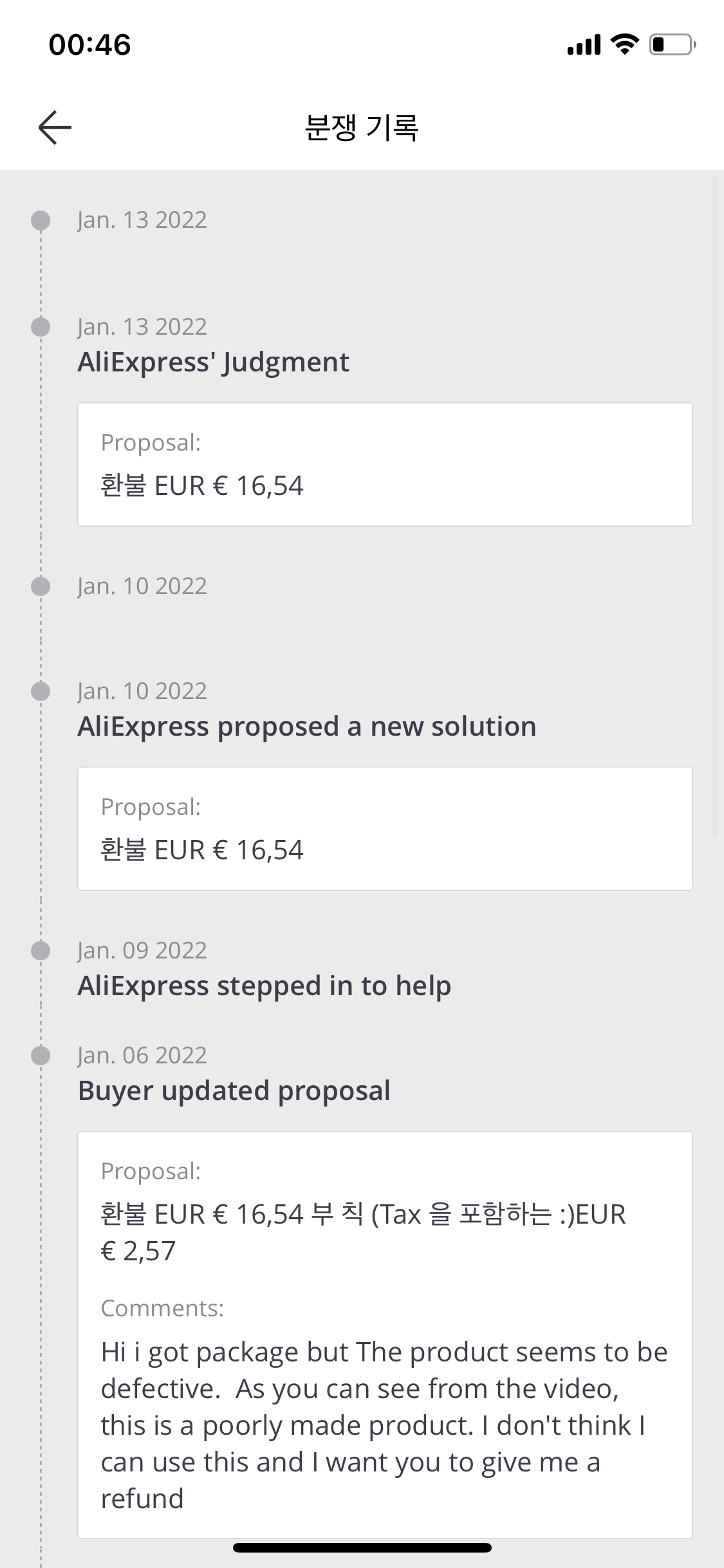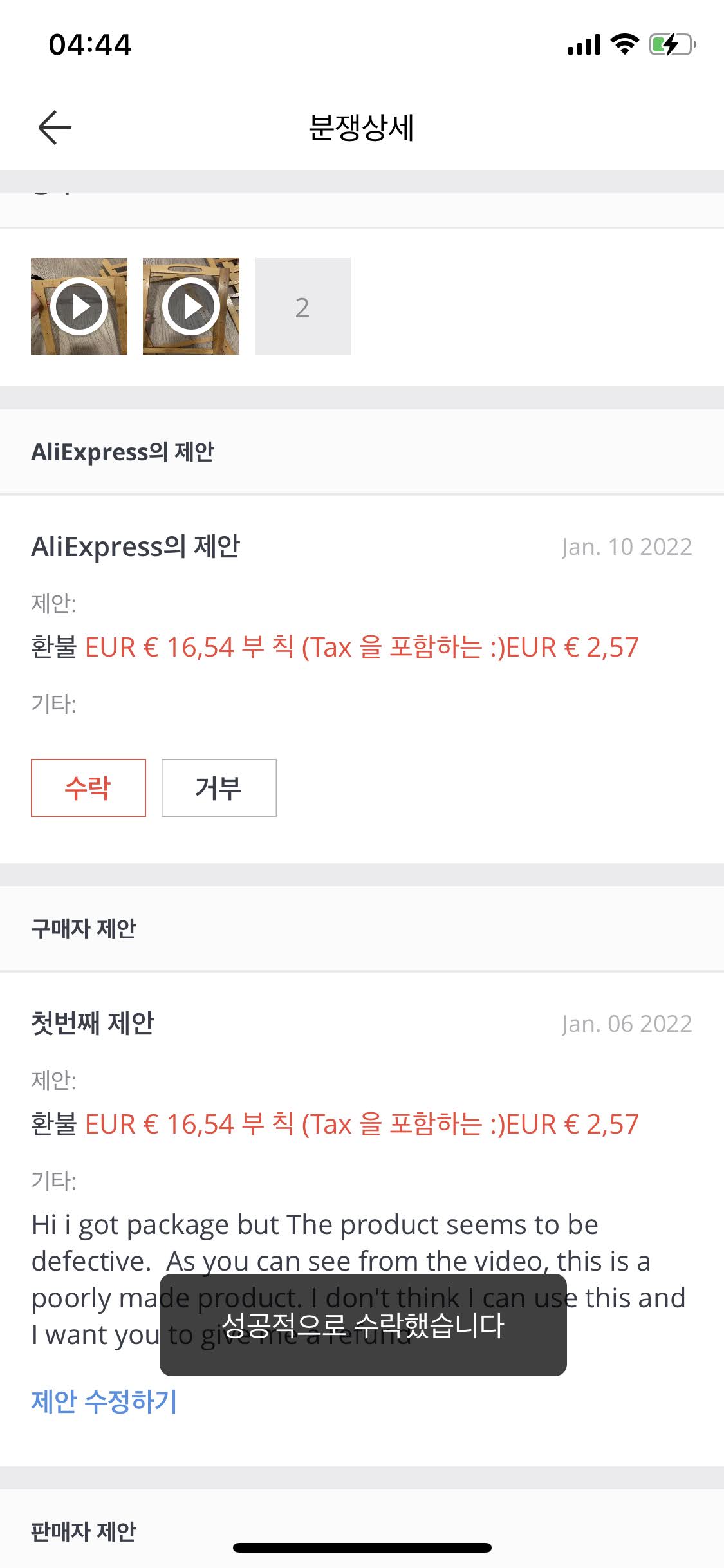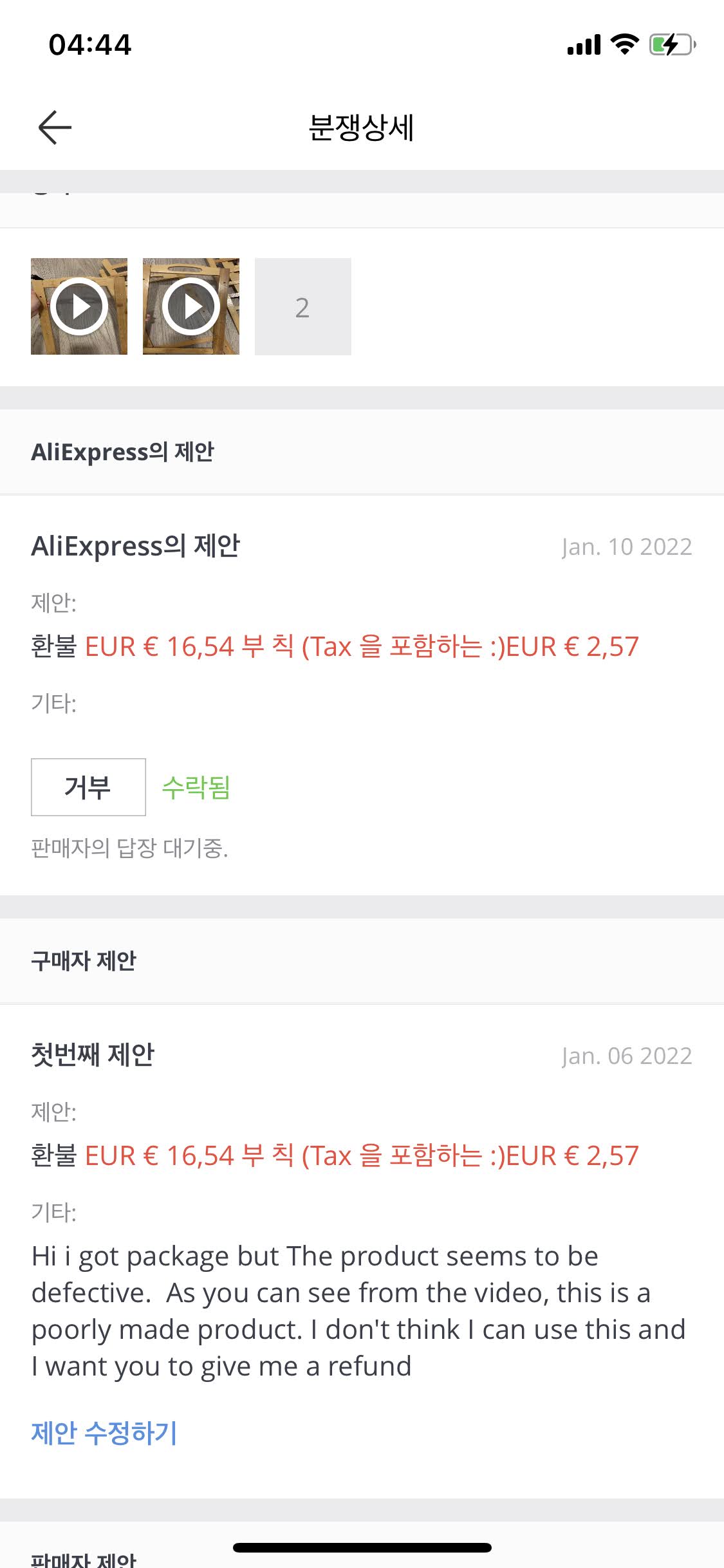 그리고 두번째 제안으로, 다시 전액환불 요청을 하면 되는데(이때는 알리익스프레스가 개입함)