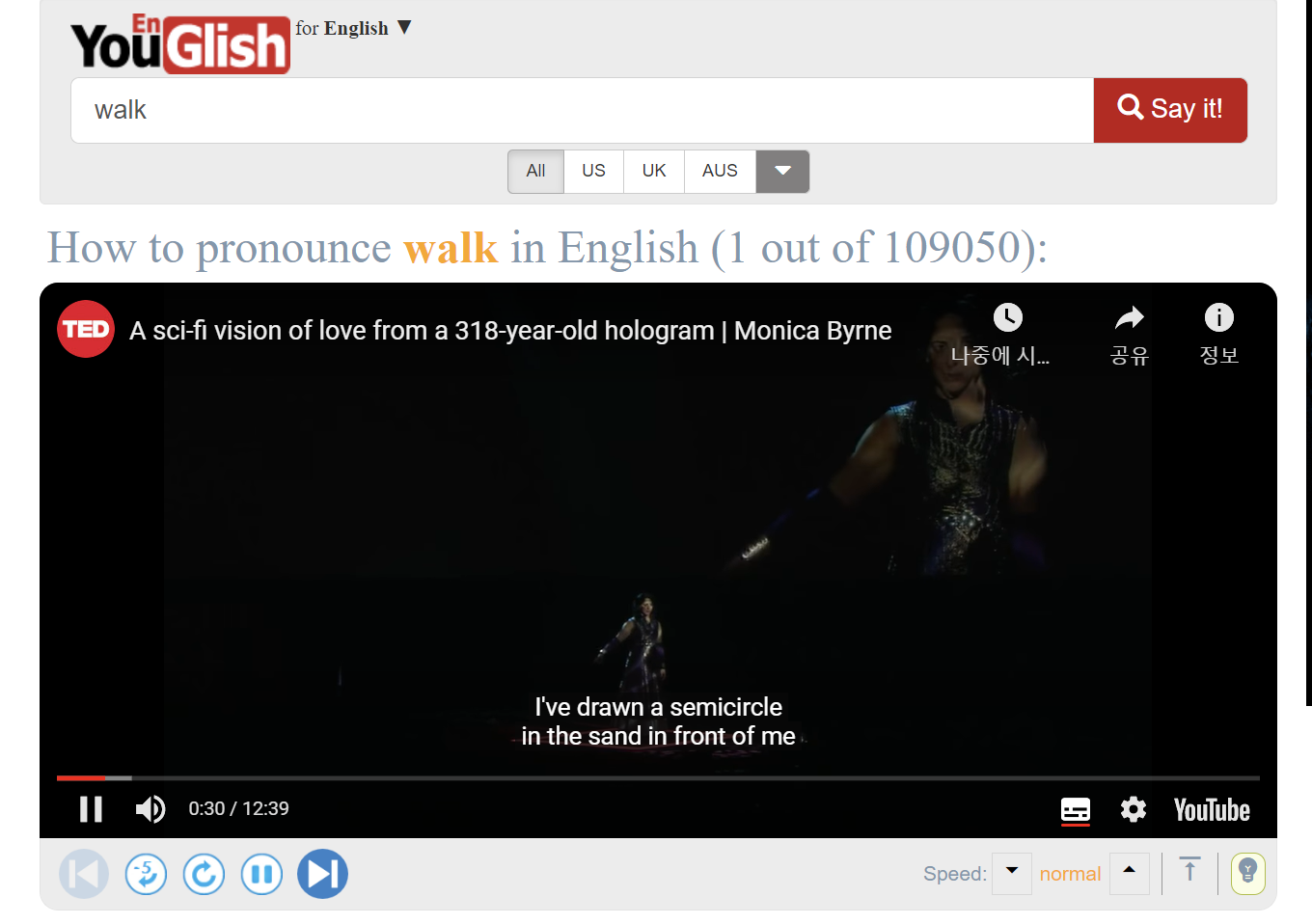 이 사이트도 마찬가지로 자기가 듣고싶거나 연습하고 싶은 단어,문장을 치면