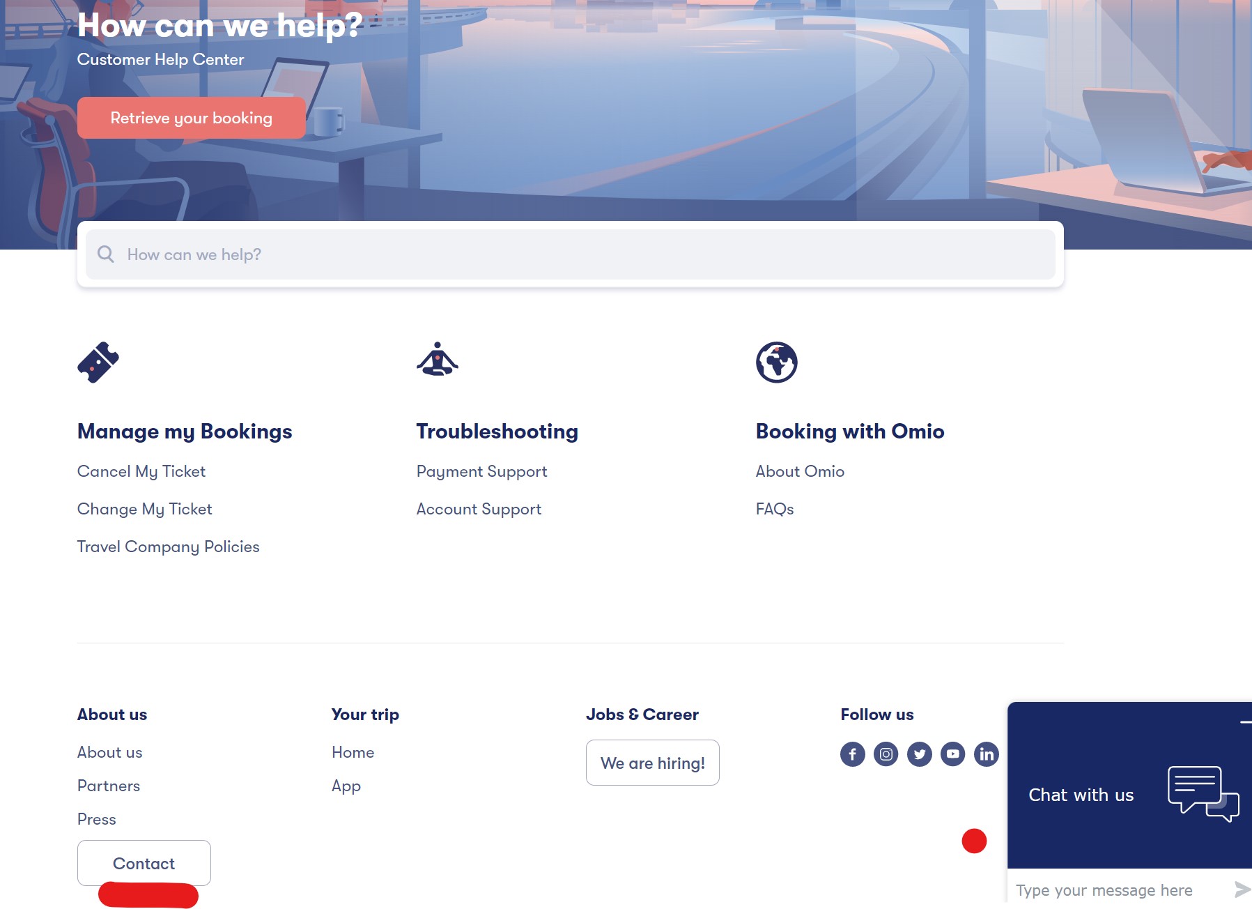 오미오 홈페이지에서 제일 아래로 내려가면 Help centre가 있음 클릭