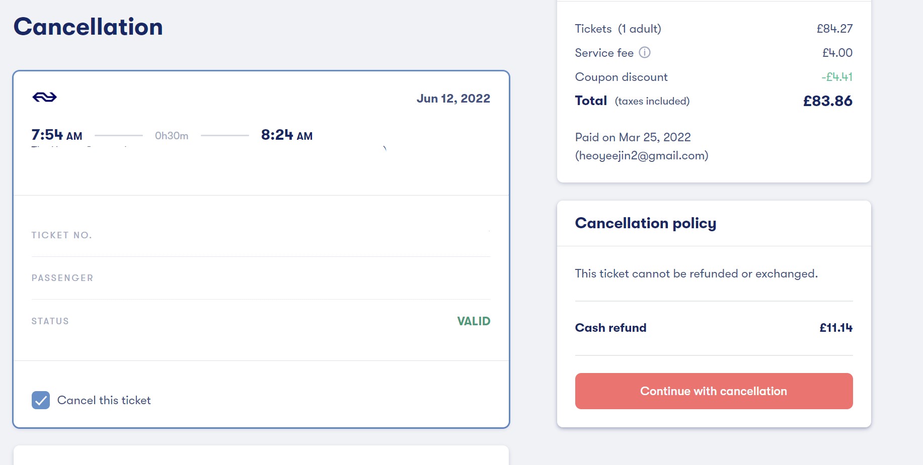(일단 내 티켓은 논리펀더블이라서 거의 환불을 못받는셈..)