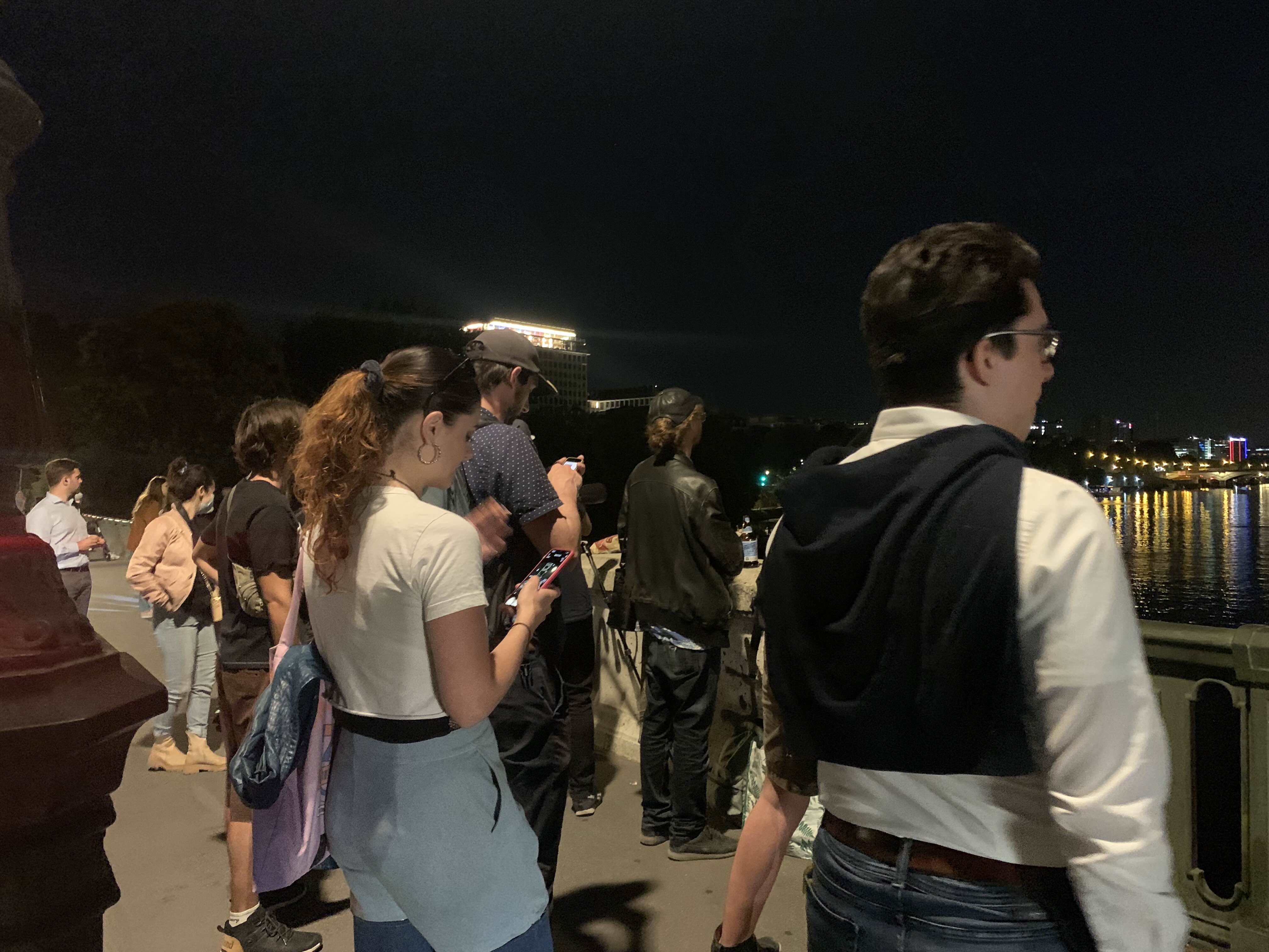 이날 파리는 보름달이 떳고 망원경 가져와서 보고있도라...