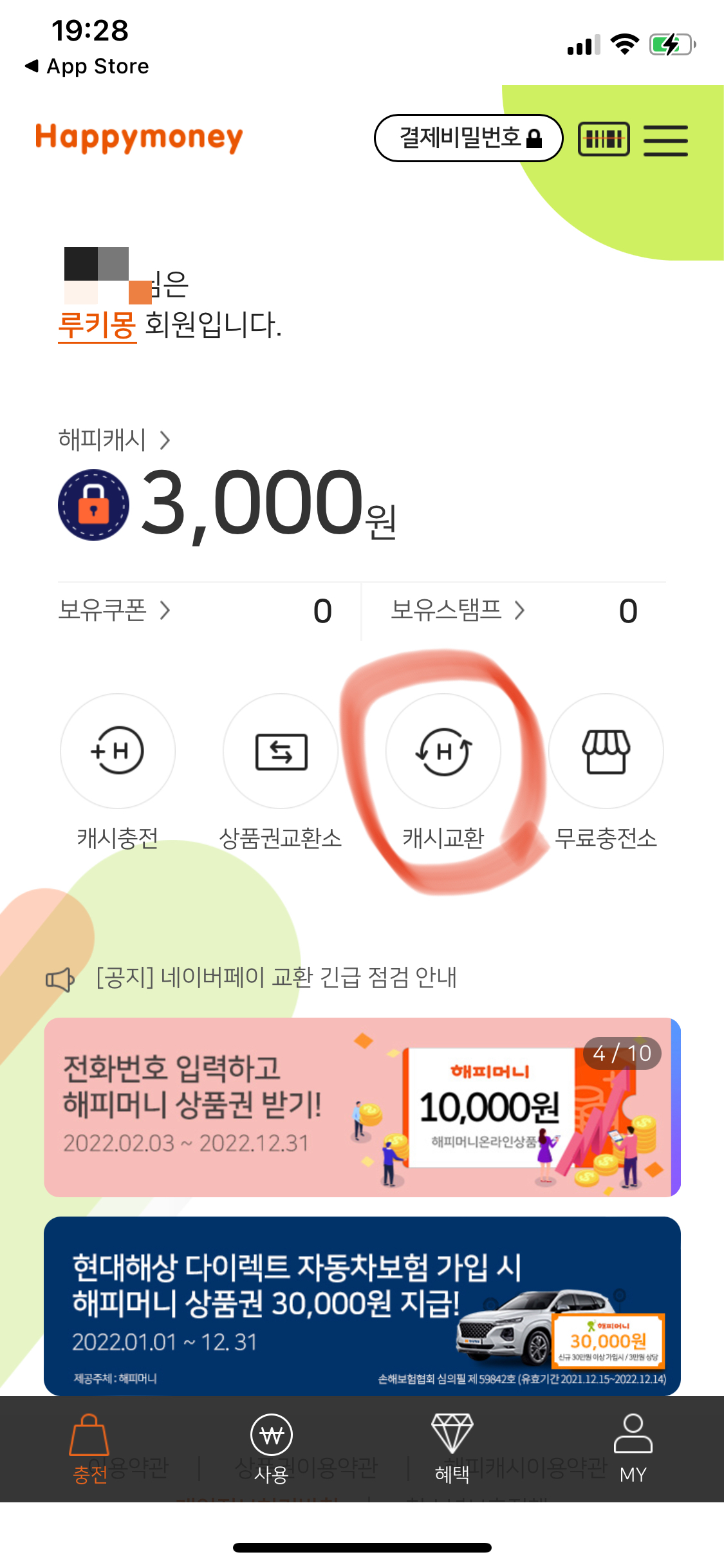 해피머니 상품권을 네이버 페이 포인트로 전환하여