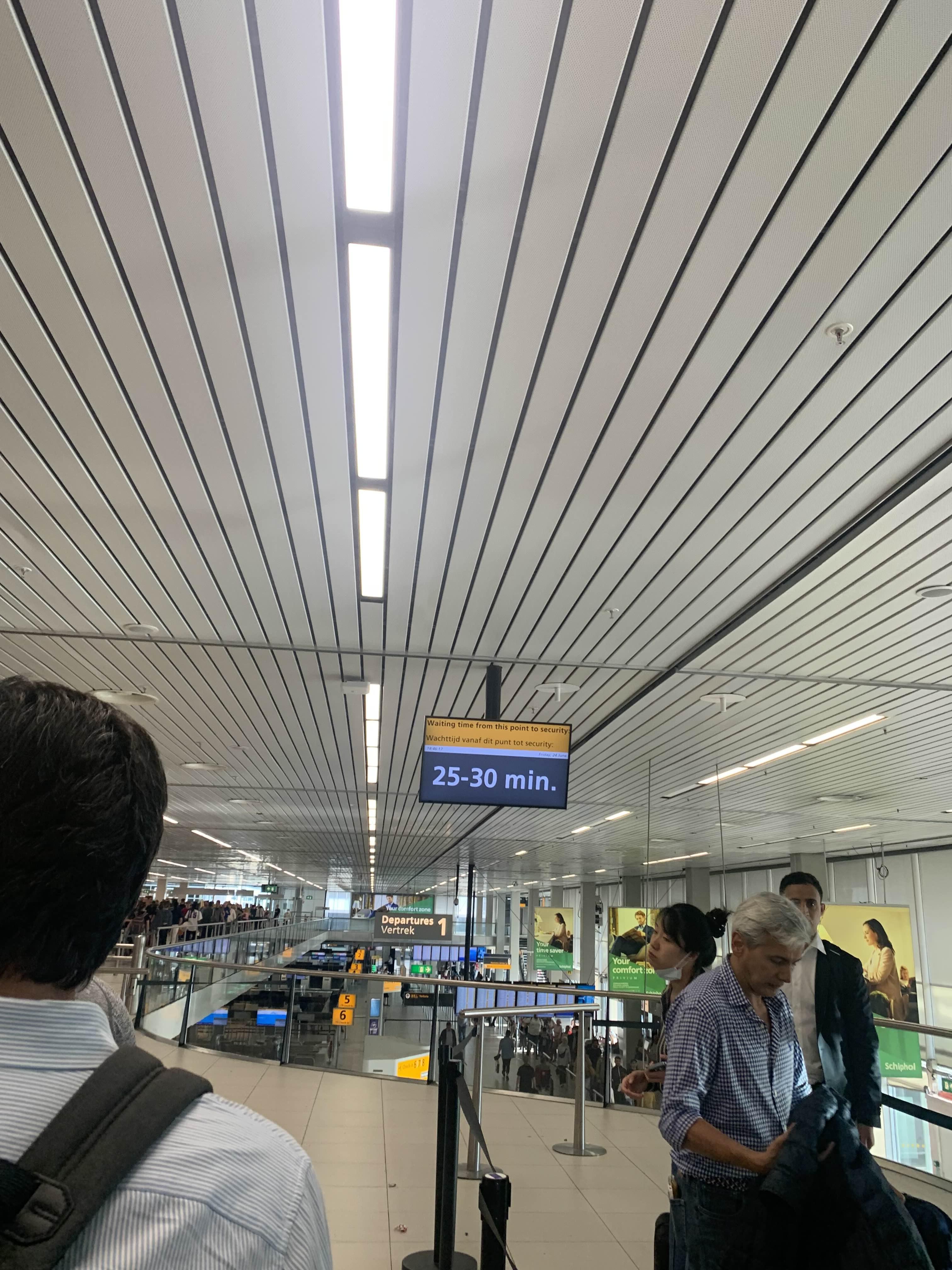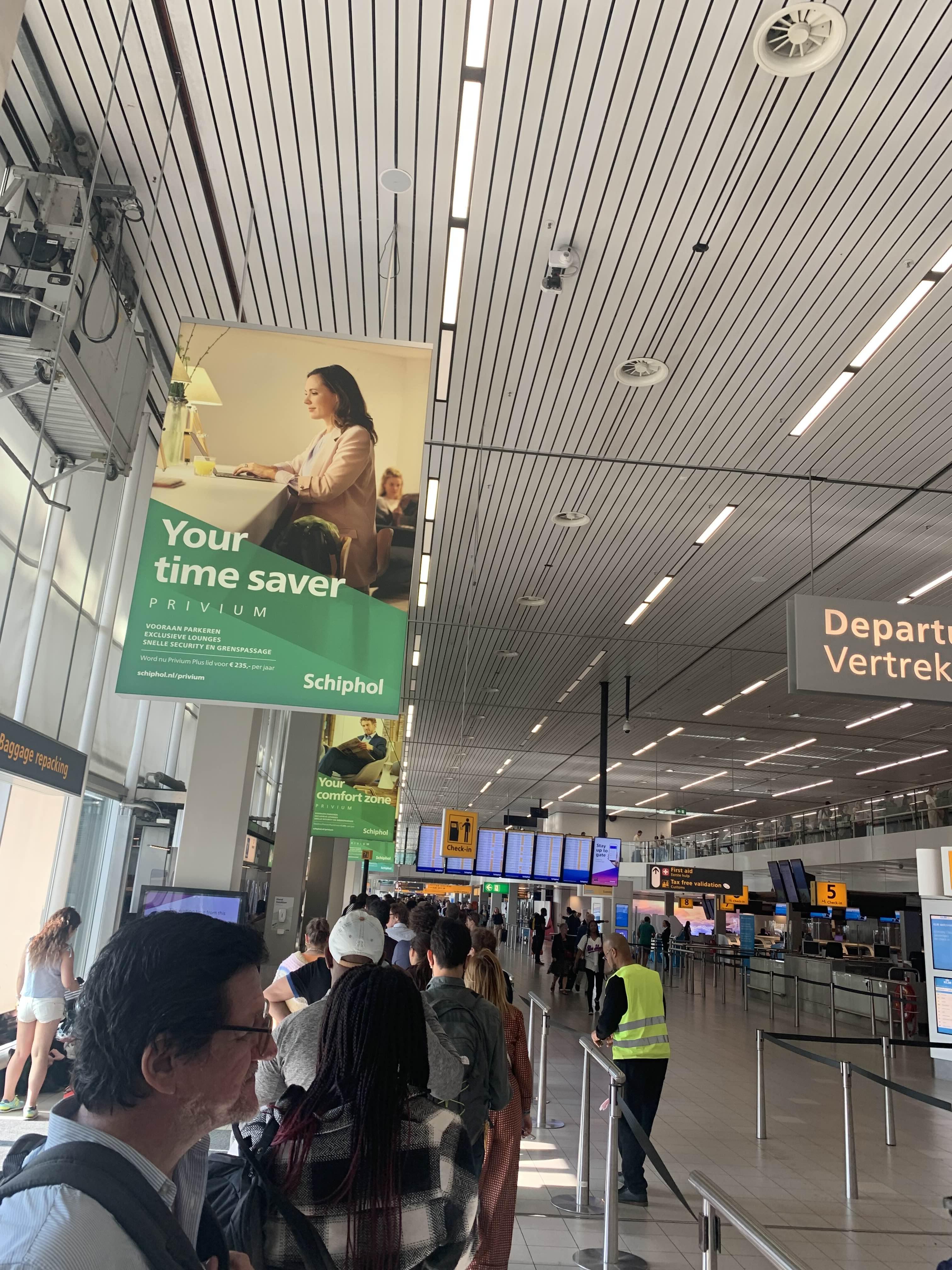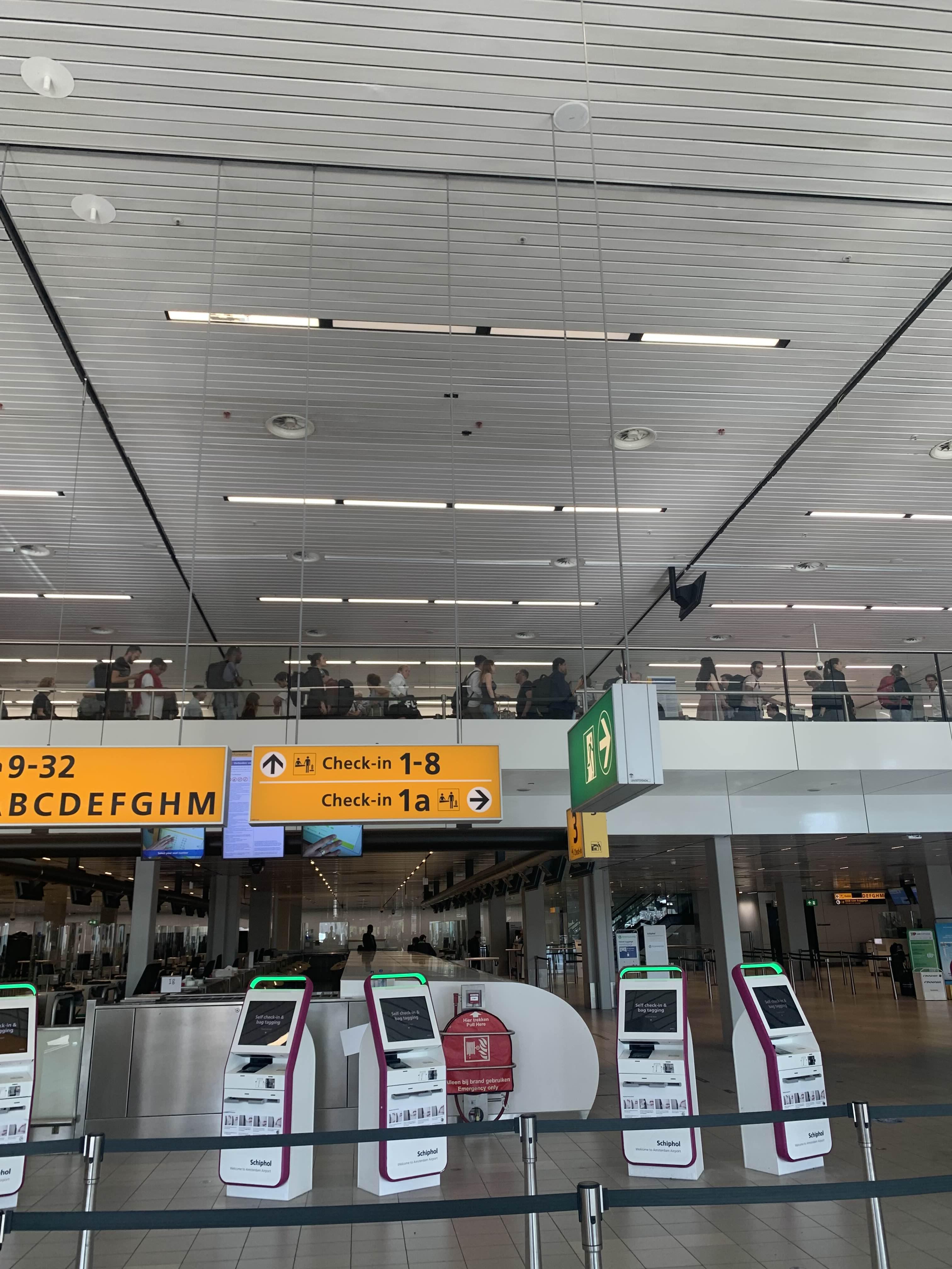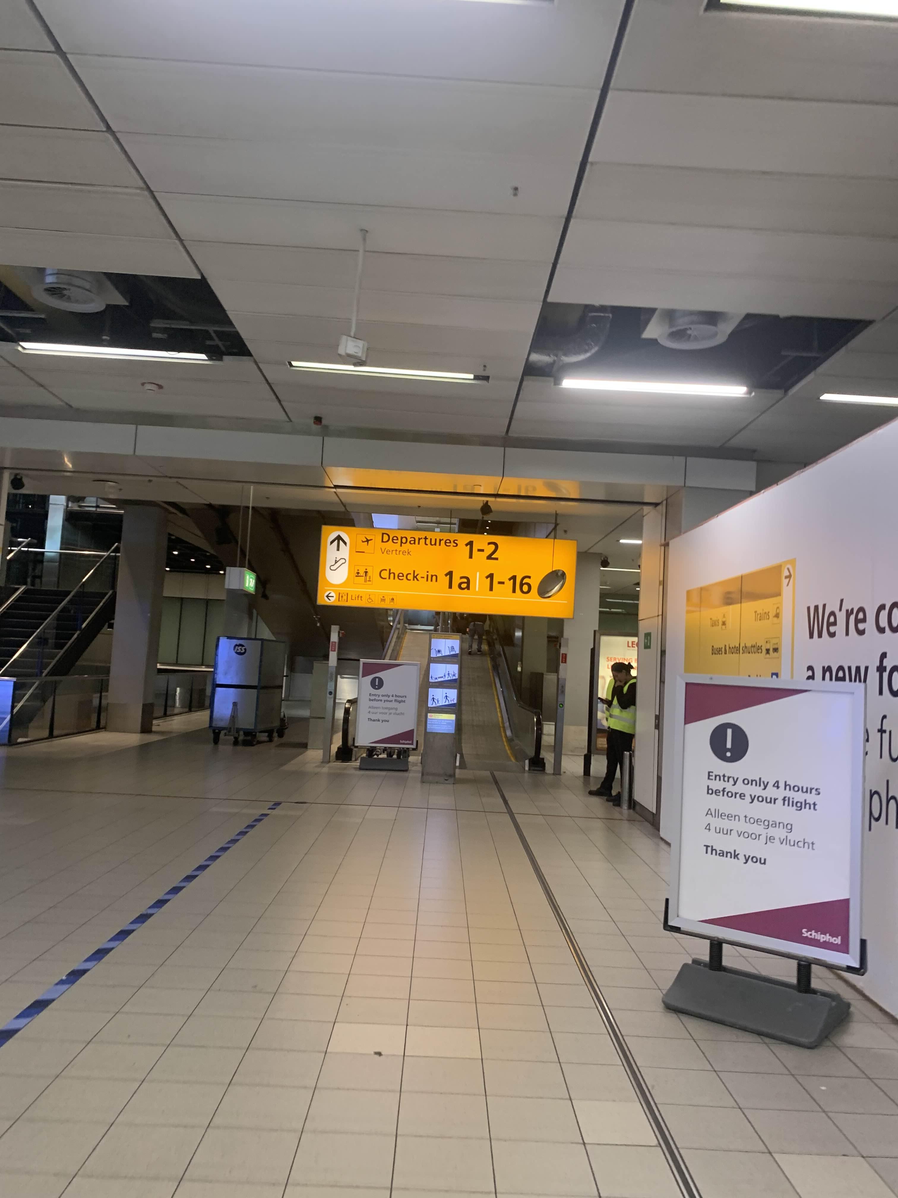스키폴 공항에 내려서 출국 체크인을 하러가는 윗층에 4시간 전의 승객만 입장 가능하다라고 써있긴 했지만