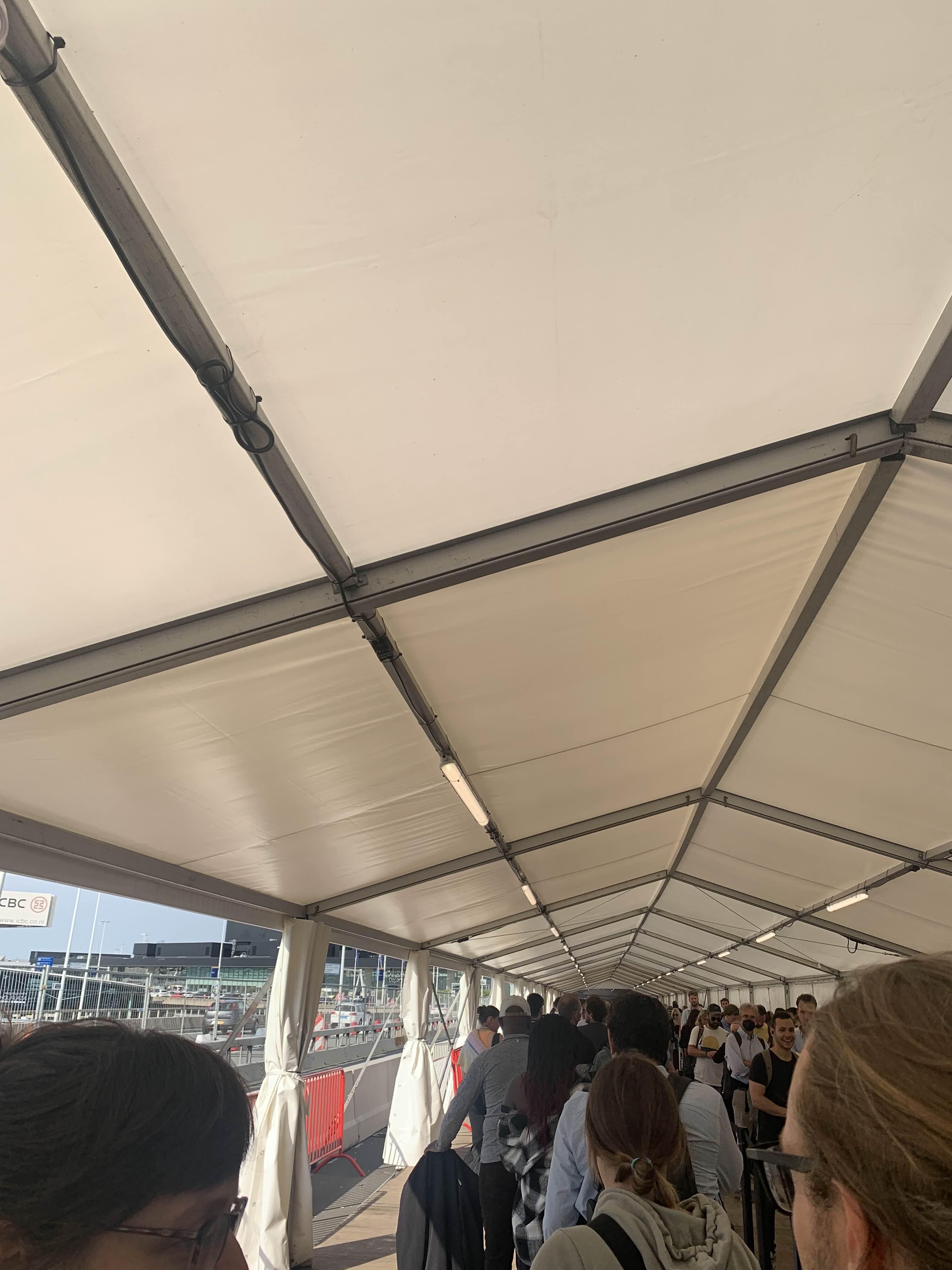 바로 공항 밖을나와서 한참이나 더가서 줄을 섰는데 게다가 그것도 U자 모양으로 꺾여져 있었어요
