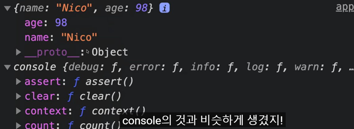 사실 콘솔.로그 = 플레이어.에이지 같은 Object 이다.