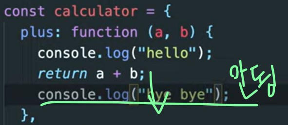 : 무언가를 return 하면 계산을 담당하는 function 코드는 = functioin 이 ruturn 하는값