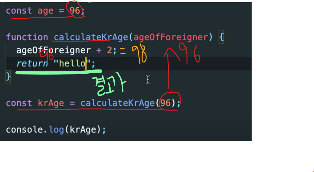 = krAge 는 calculateKrAge 의 Return 값이 된다.