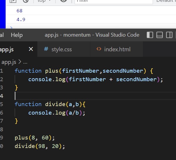*한번 return 하면, function 은 작동멈추고 결과 값을 return 하고 끝남.