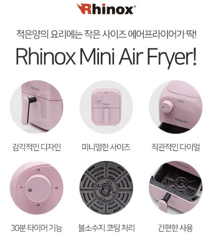 라이녹스 에어프라이어는 작지만 전원차단/안전기능또한있다.