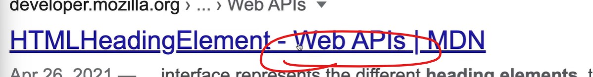 링크에 Web APIs 포함된 페이지 찾어 (자바스크립관점의 html heading element 란뜻)