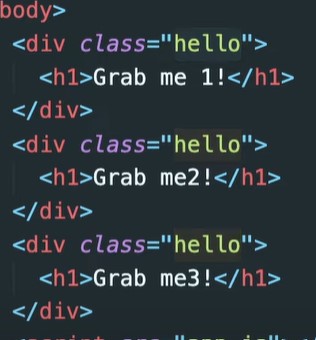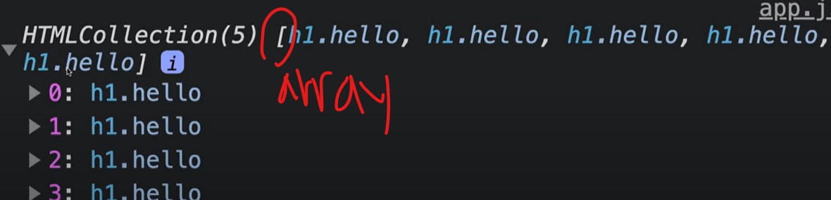이말은 hellos. 로 무언가를 가져올수 없단말./걍 많은 h1이 들어있는 array 이기에