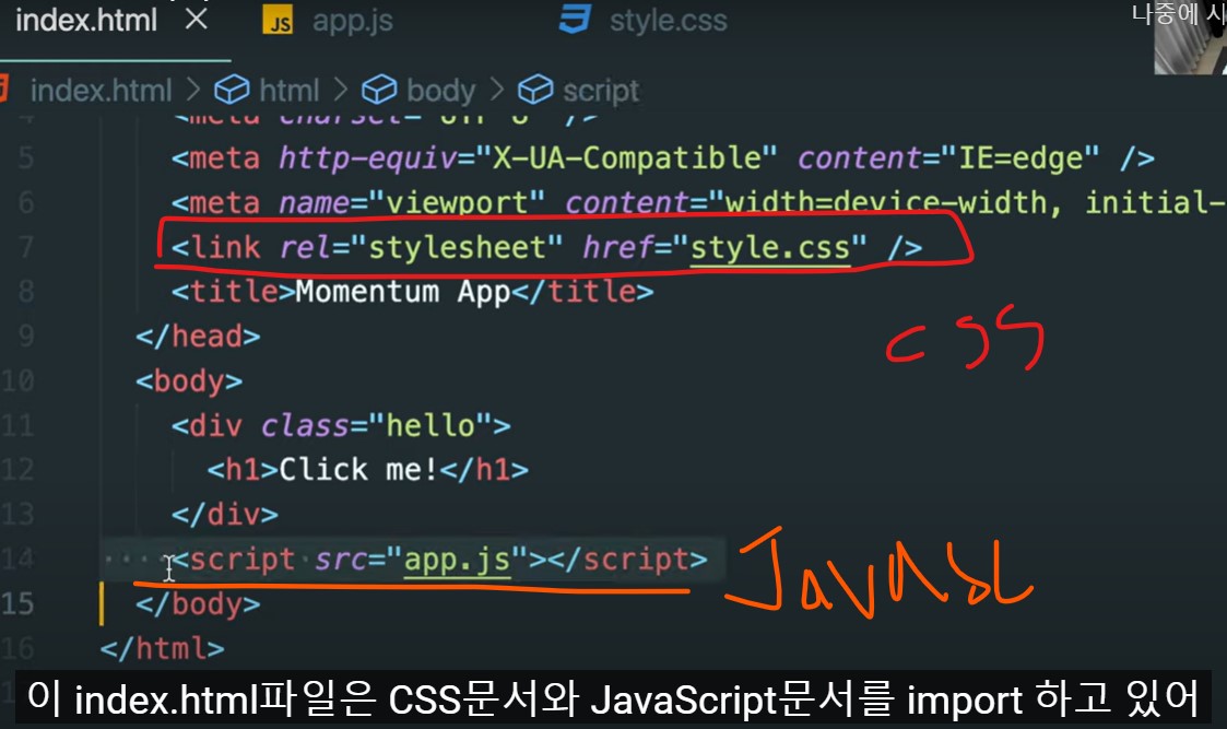 HTML이 이걸 load 해줘야지 javascript가 access 할 수 있음.