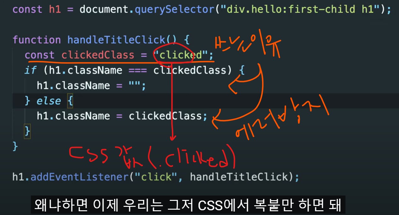 자바스크립은 html에서 class 네임 만들어줘도 -> 과거따위 상관안하고 자바에있는걸로 바꿔버림.