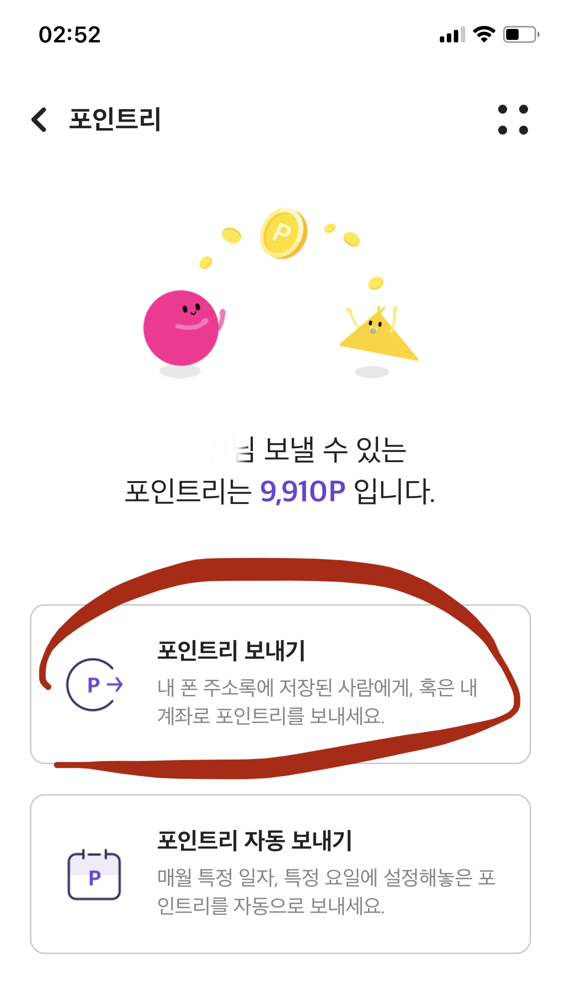 3) 포인트리 보내기 클릭