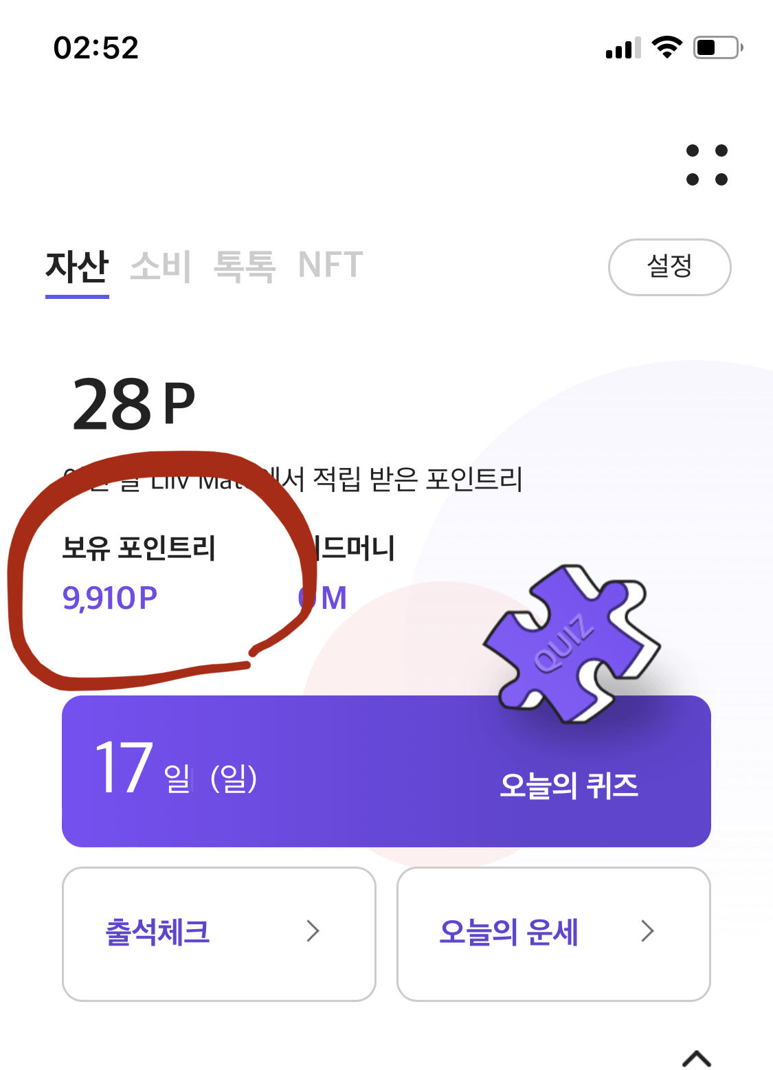 1) 홈화면 -> 보유 포인트리 저부분 클릭