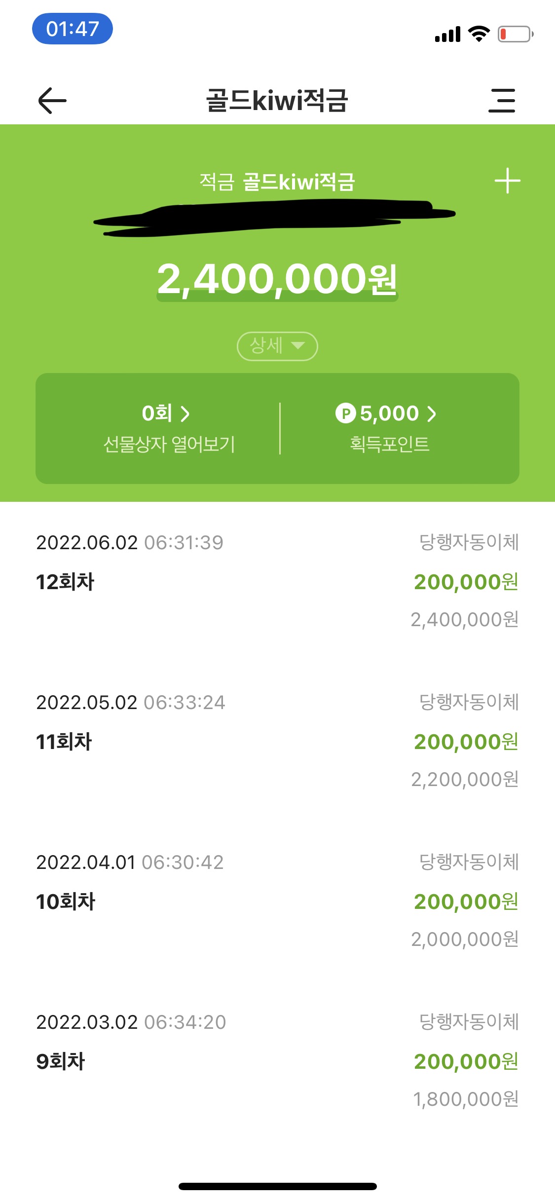 5)매월 자동이체시 납입 회차에따라 : 최대 5000 리브메이트 포인트를 보너스로 줍니다.