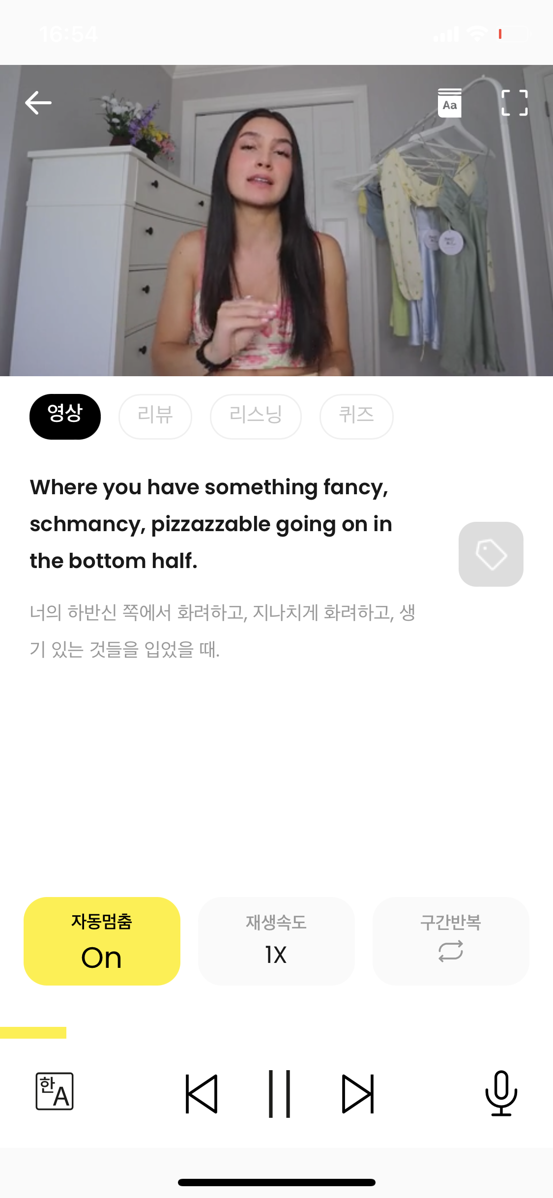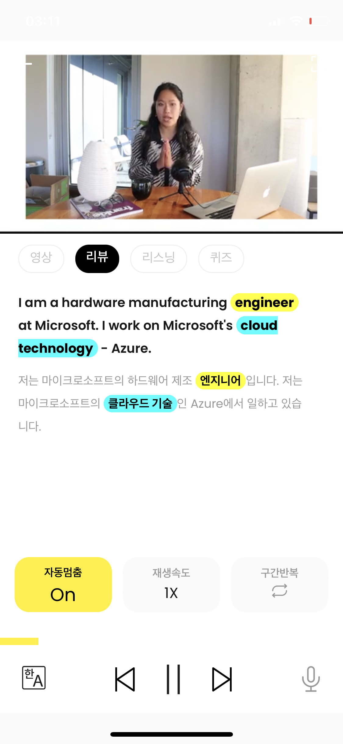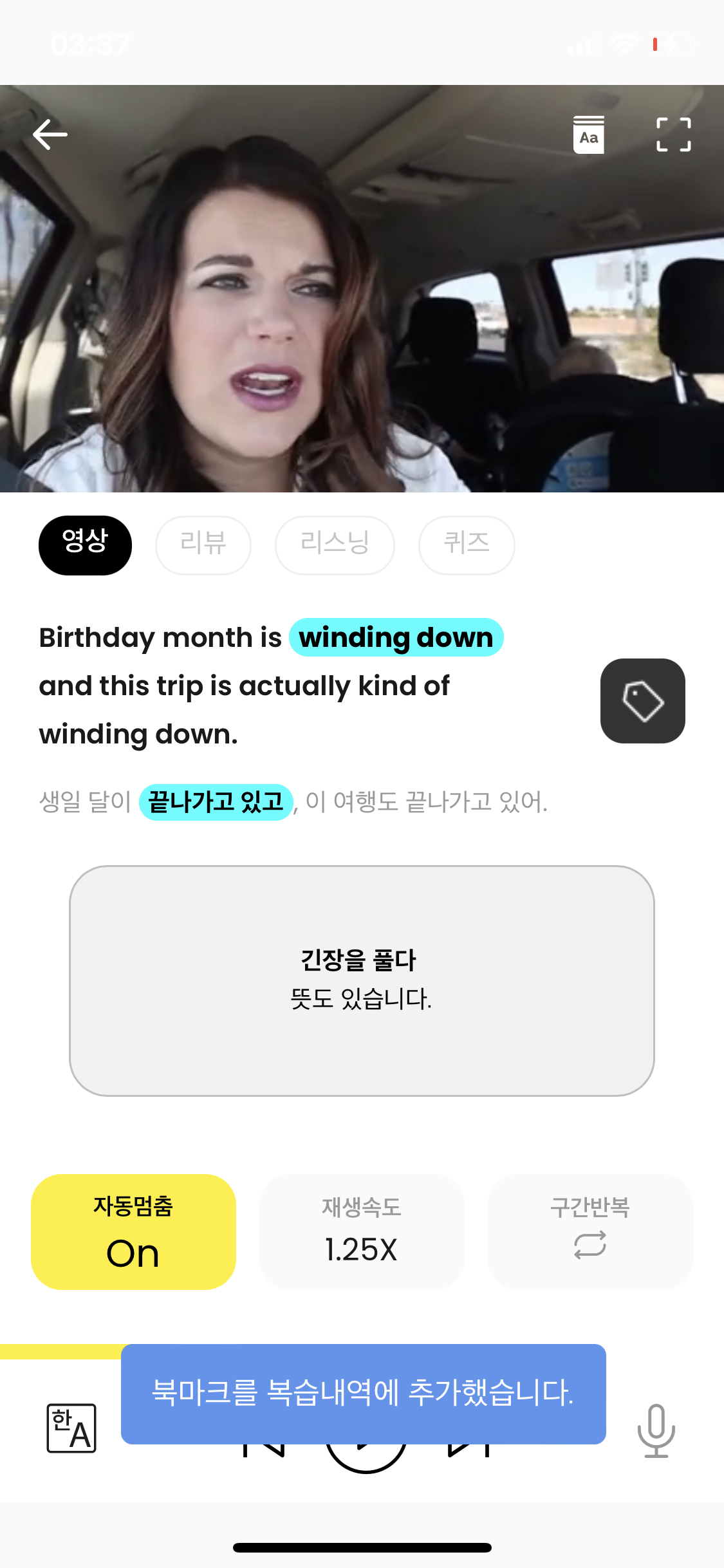 영상 속 각각의 문장들을 직접 말해보며 회화연습을 할 수 있습니다