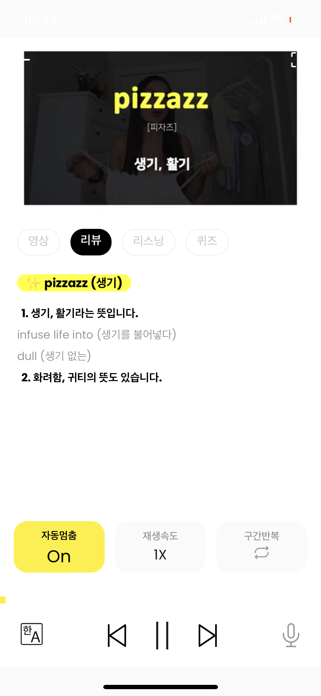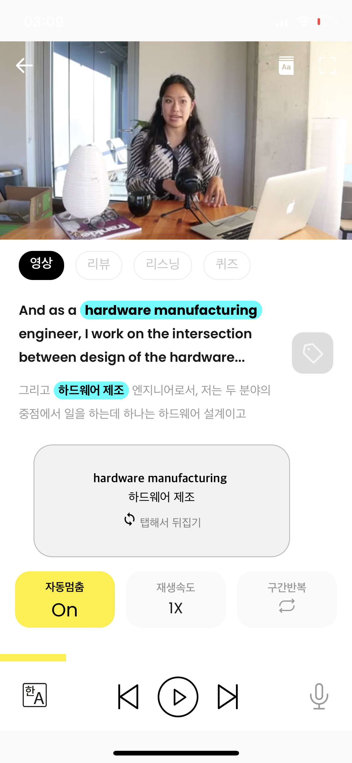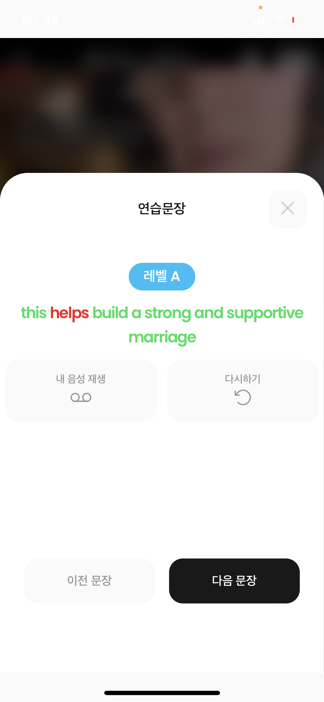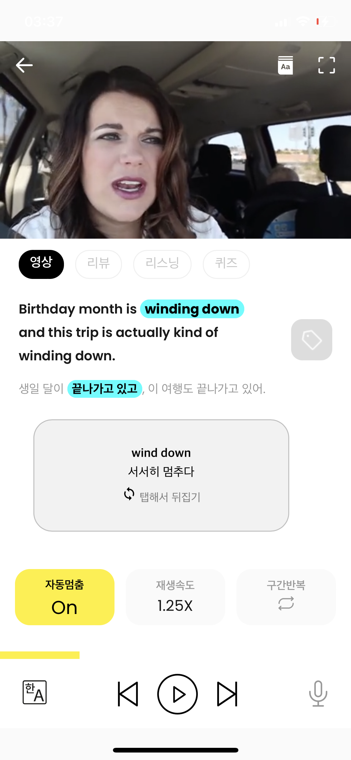 영상 속 각각의 문장들을 직접 말해보며 회화연습을 할 수 있습니다