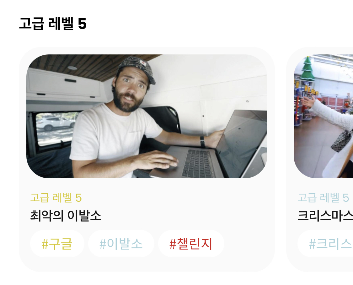 입문 -> 고급은 레벨 1 ~ 레벨 5 으로 자체적으로 영상의 레벨이 좀 더 세분화되어있다.