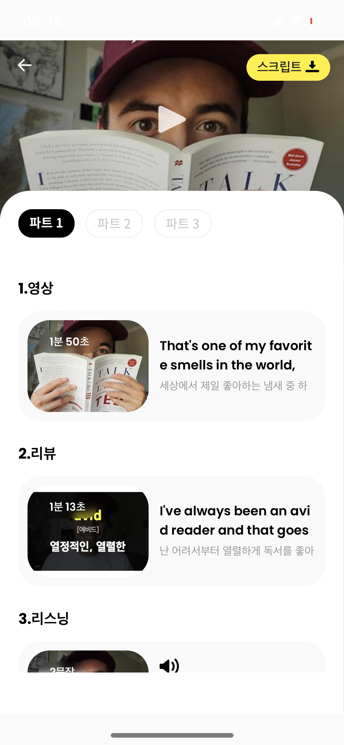 기존 쓰던것들은 스크립트가 없어서 따로 공책에 적어가며 공부를 했었는데