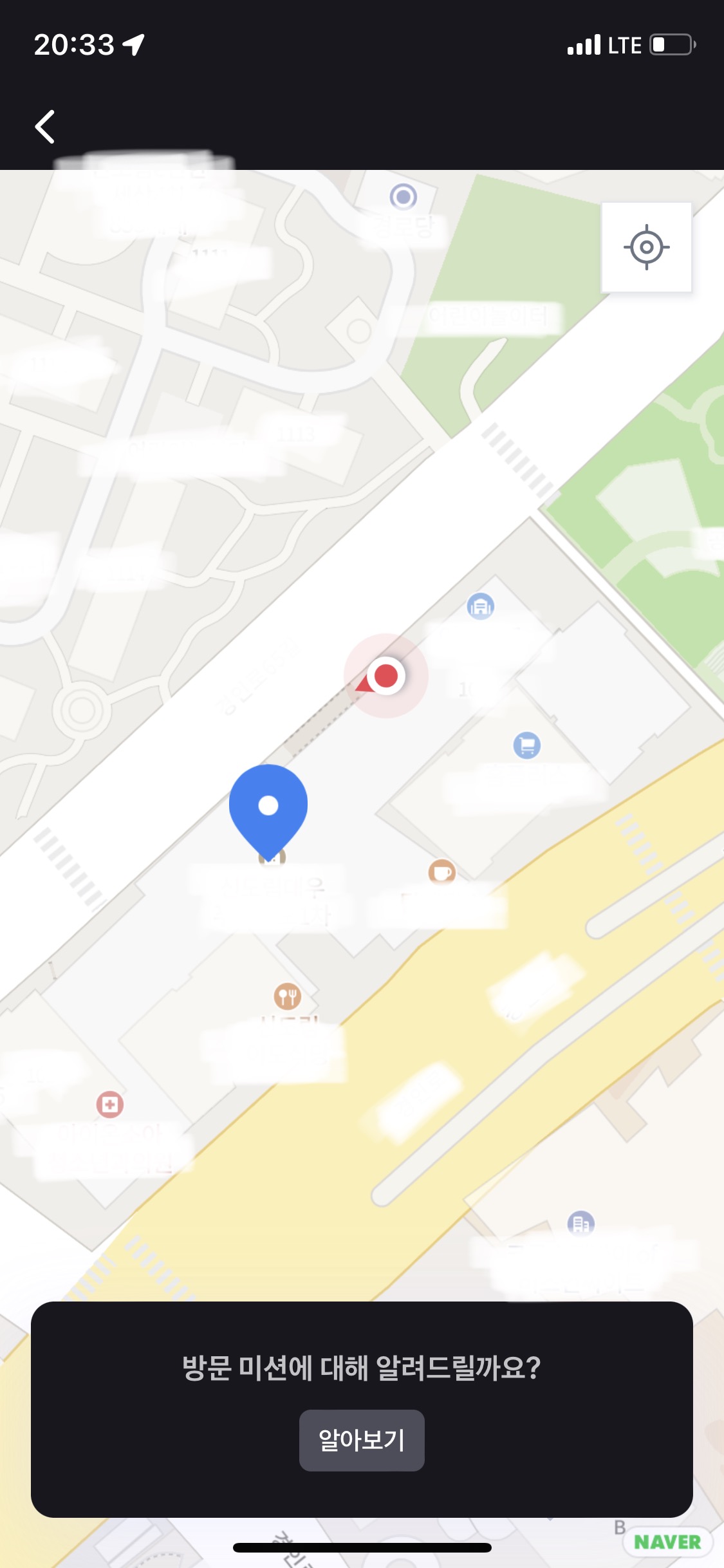 해당 위치에 자동으로 감지된 위치추적으로 도착알림이오고