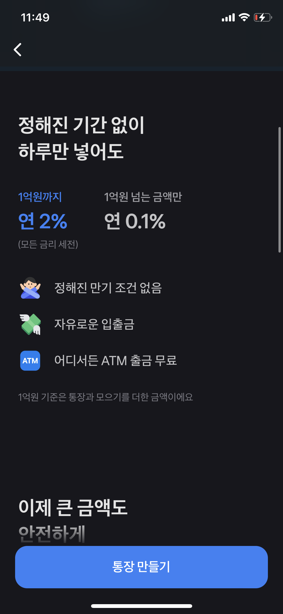 1억원이상 연 0.1%로