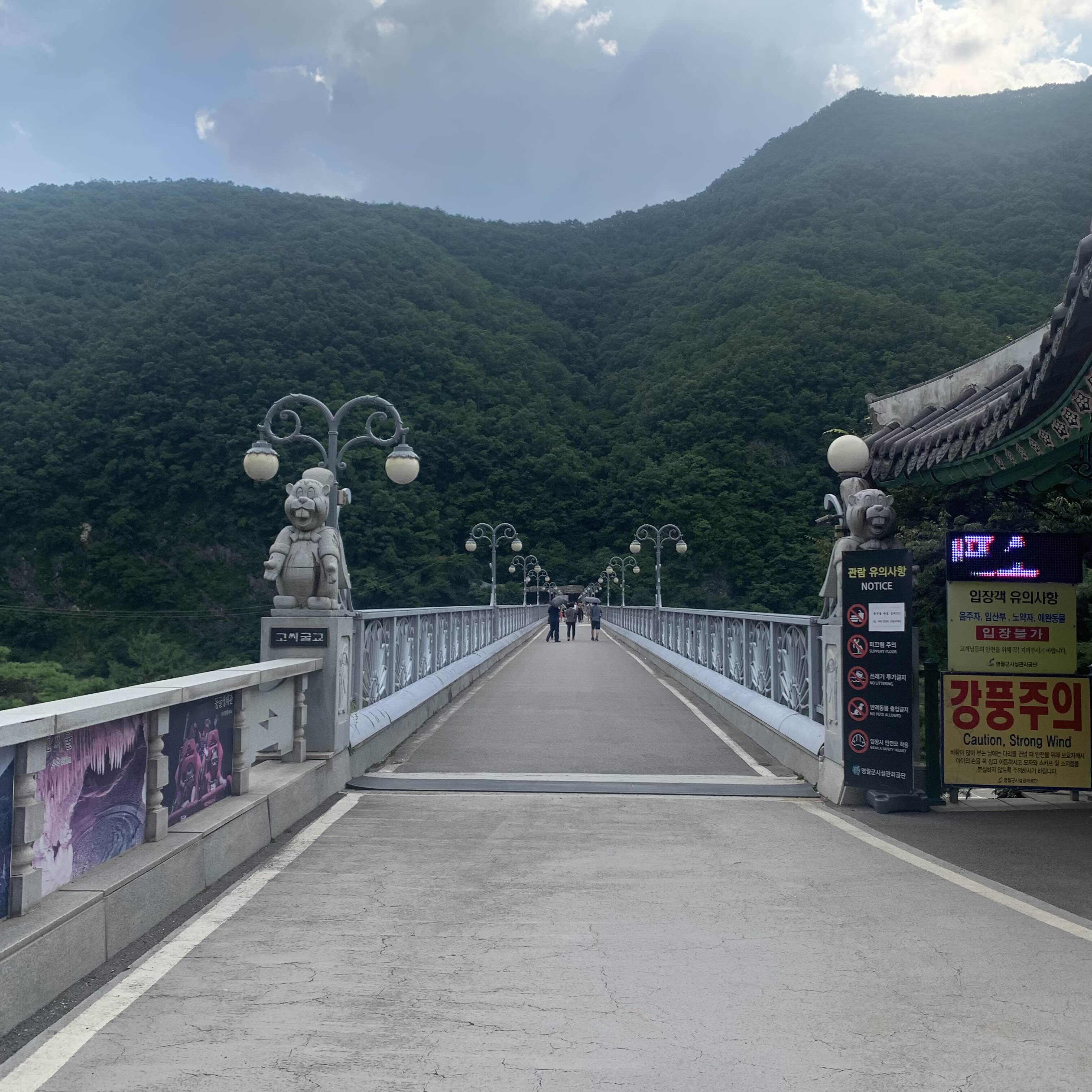 이제 고씨굴로 들어가볼까요? 이렇게 쭉~ 뻗어진 다리끝에 위치해있어요