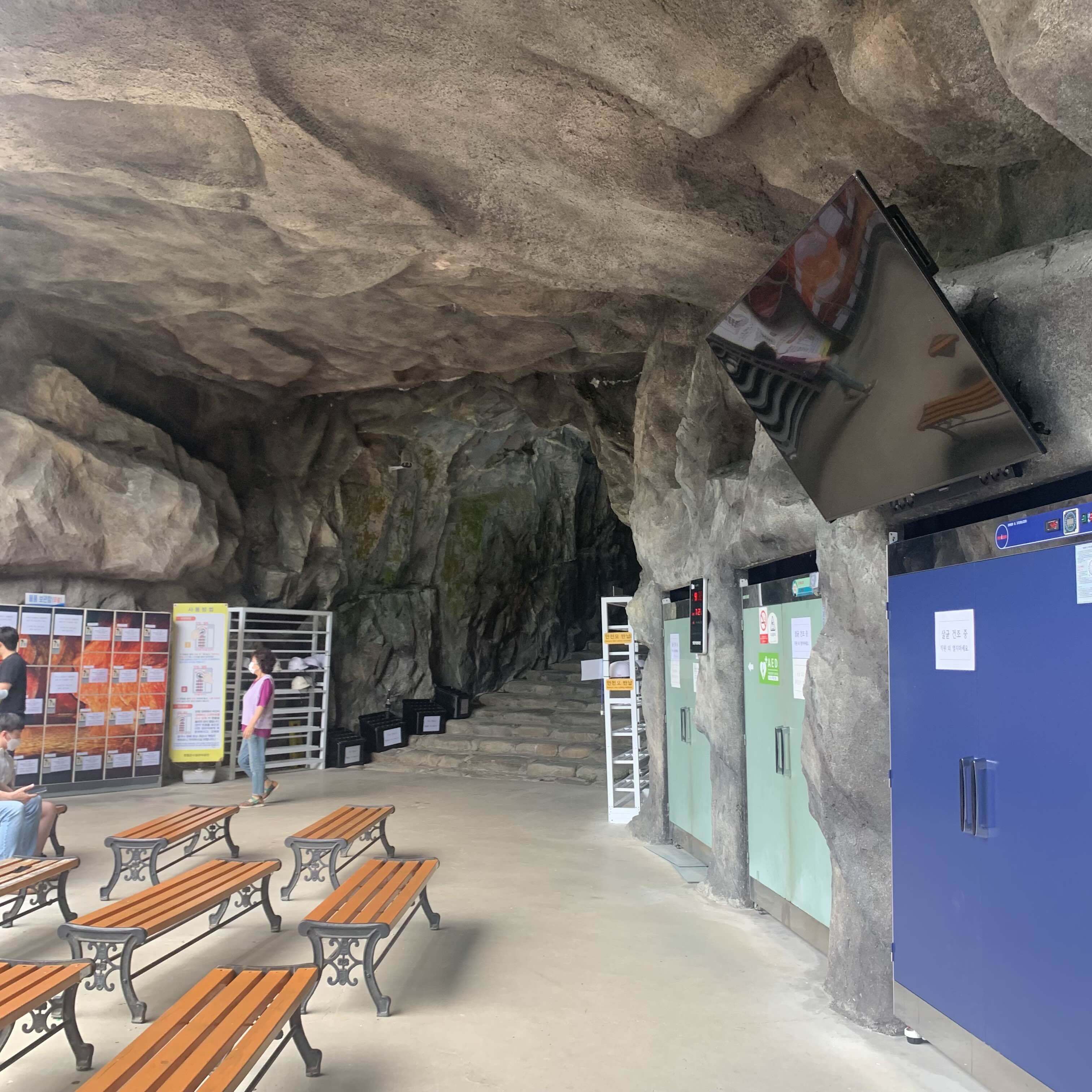 매표소쪽 왼쪽 (가게 많은곳) 에있어요