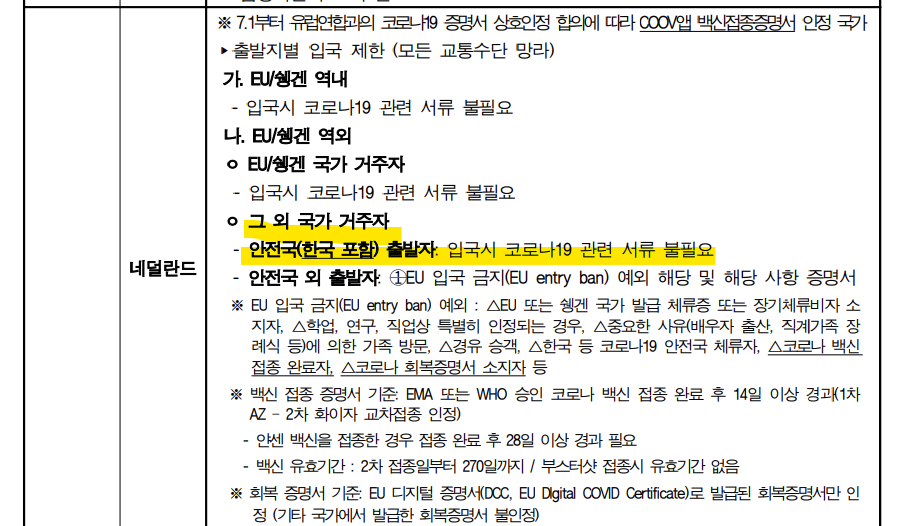 프랑스에서 -> 네덜란드 입국시 규정