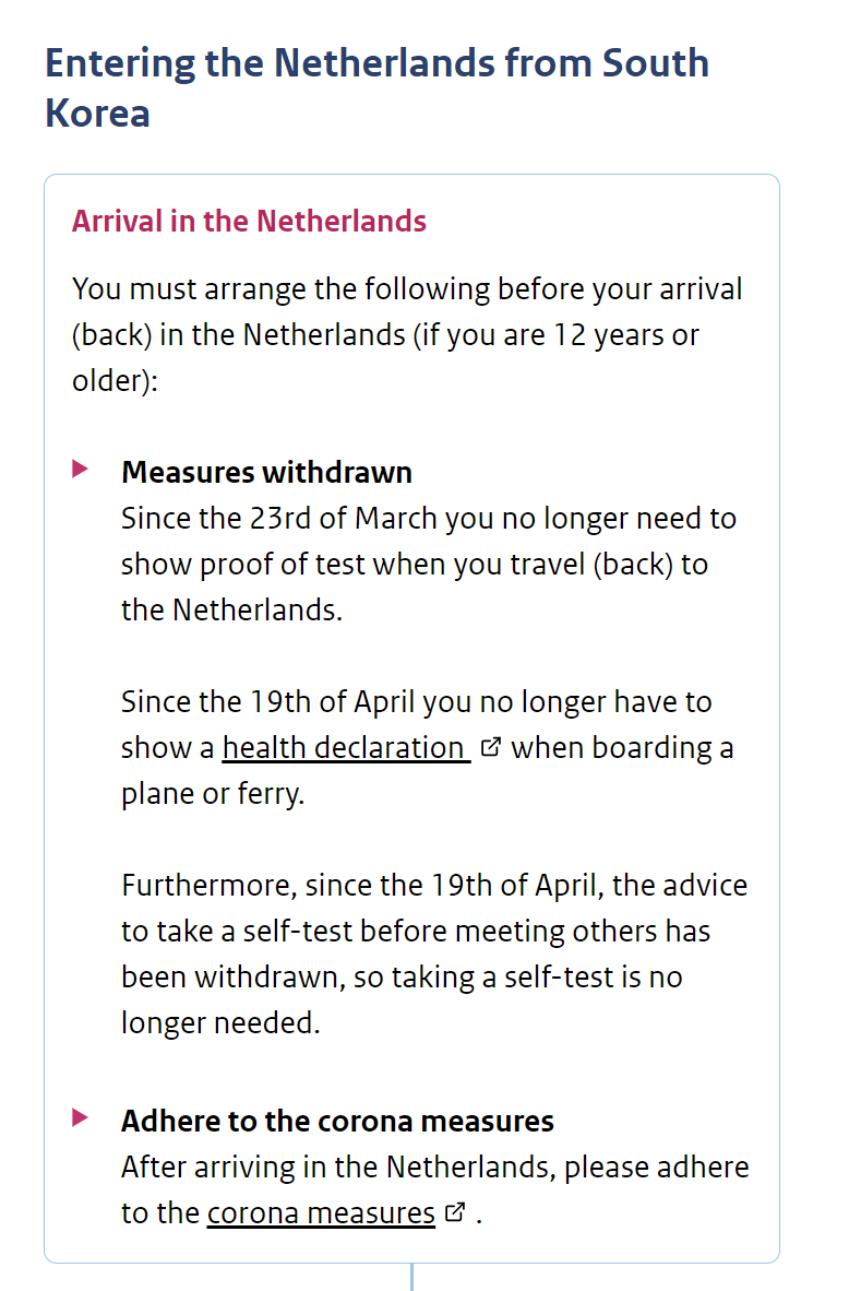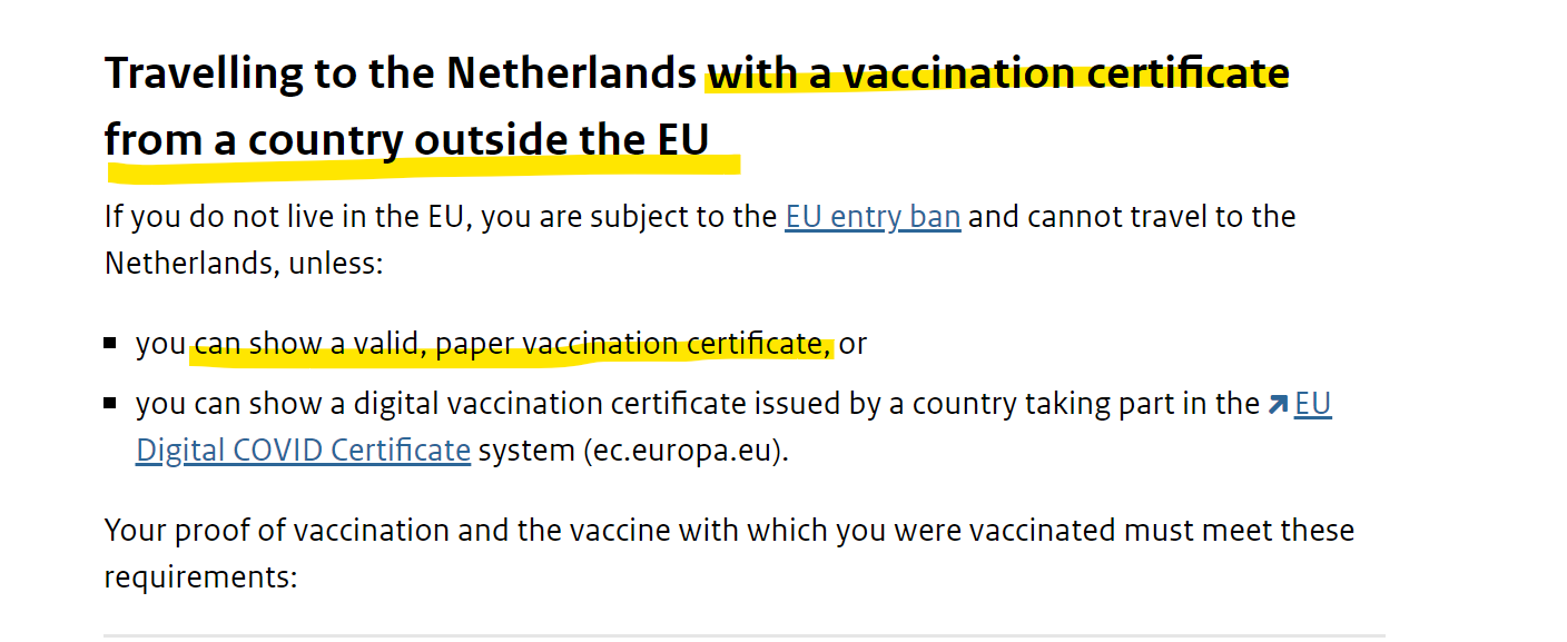 Rules for entering the Netherlands