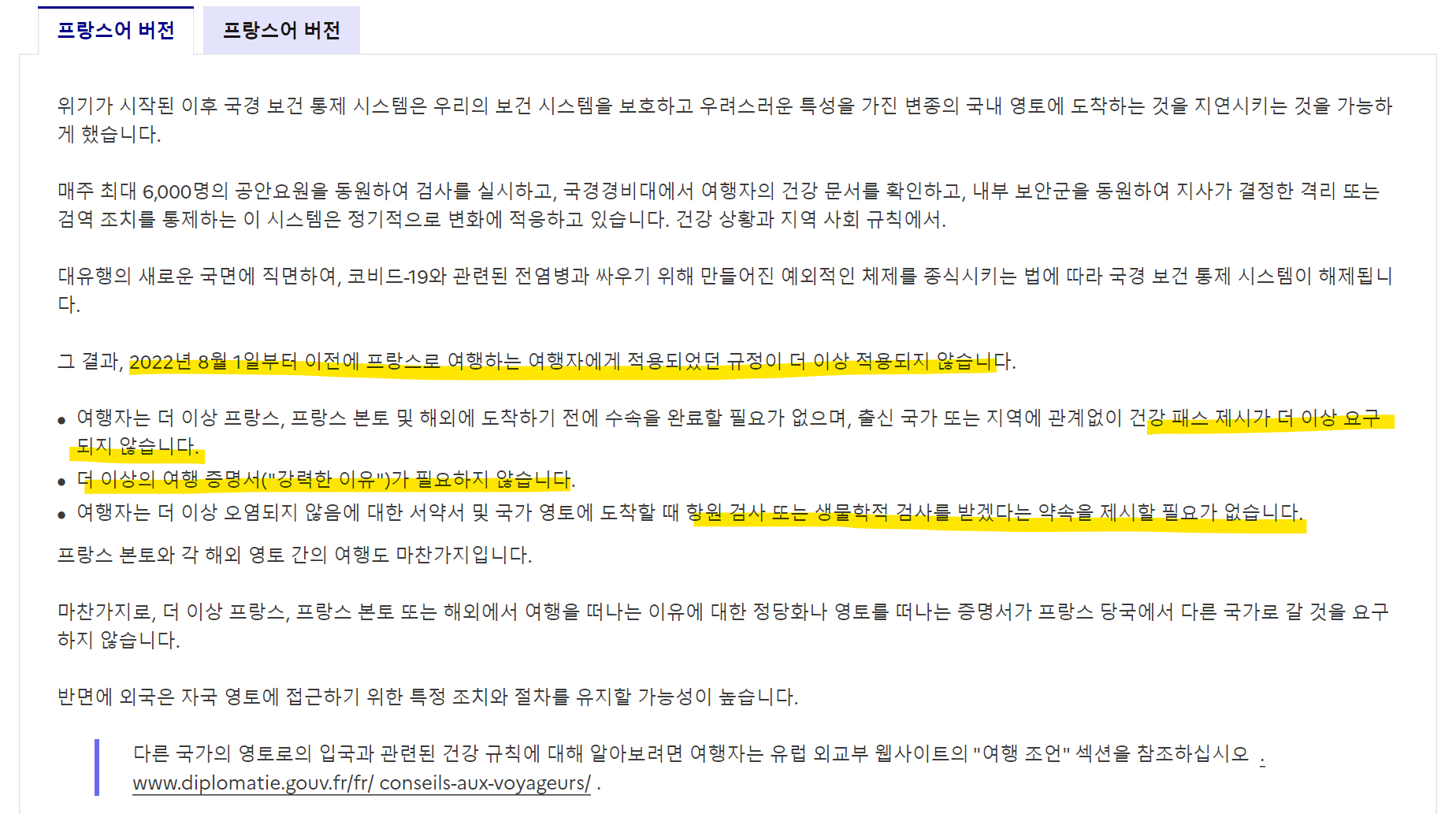(8월 17일자 사이트에 프랑스가 안떠서 확인해보니 필요없다고함)