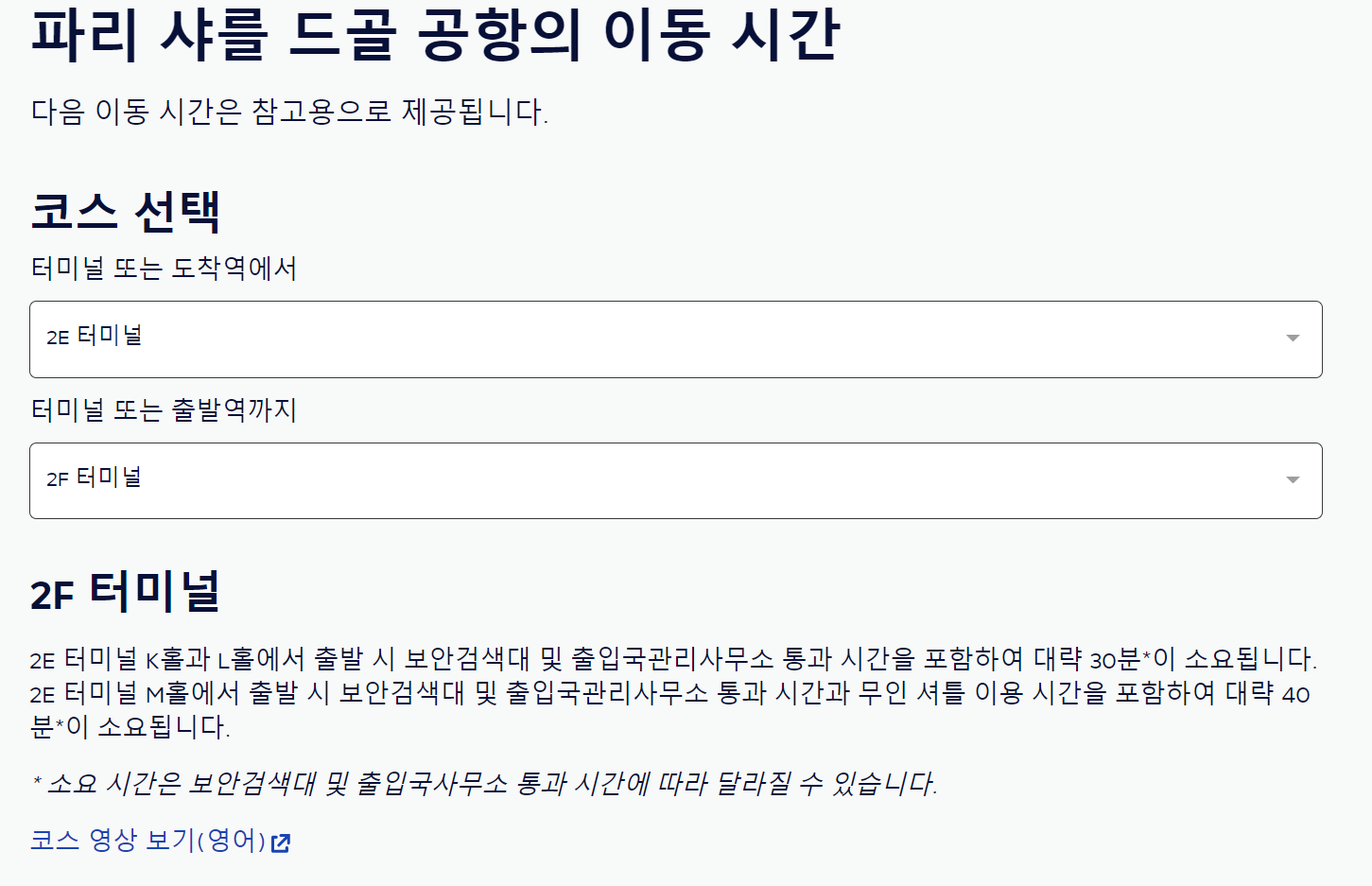 저는 2E에 내려서 2F터미널로 갔었어야되어서 넣어보니 30분이 걸린다고 나와있습니다.