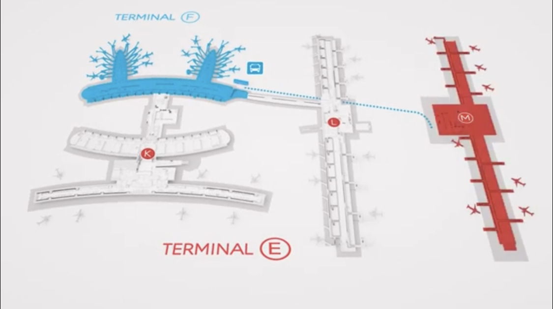 터미널 F에서 M까지는 버스를 타고 이동하라고 되어있네요