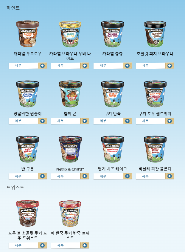 요렇게 있다고 한국 밴앤제리 공식 홈에서 가져옴 ㅎㅎ