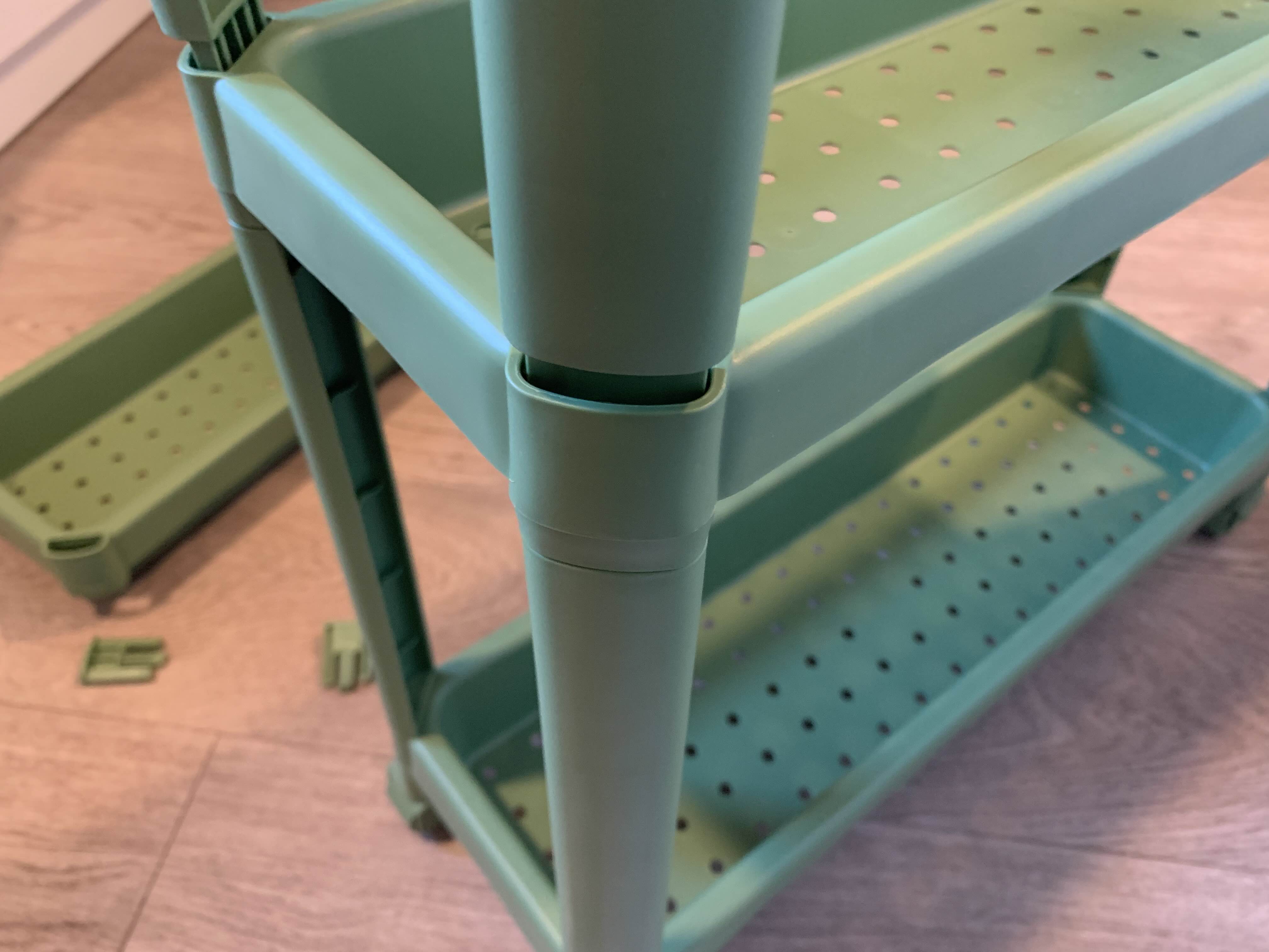 2. 맨아래 바퀴를 넣어주면 두번째 선반과 합쳐줄 막대기를 넣어준다.