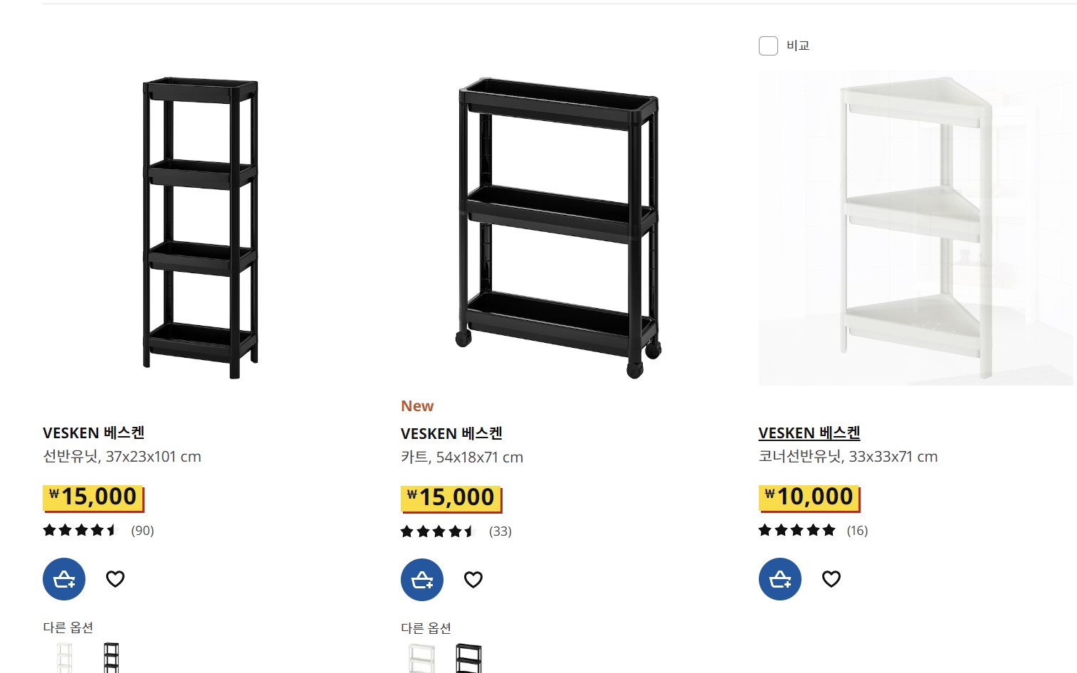욕실말고도 주방 혹은 방에 작은 틈새에 넣기 좋은 사이즈에요
