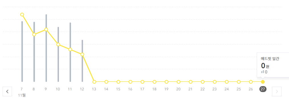 항상 애드핏은 0.1원이라도 수익이 생겼는데요 갑자기...0..0..0