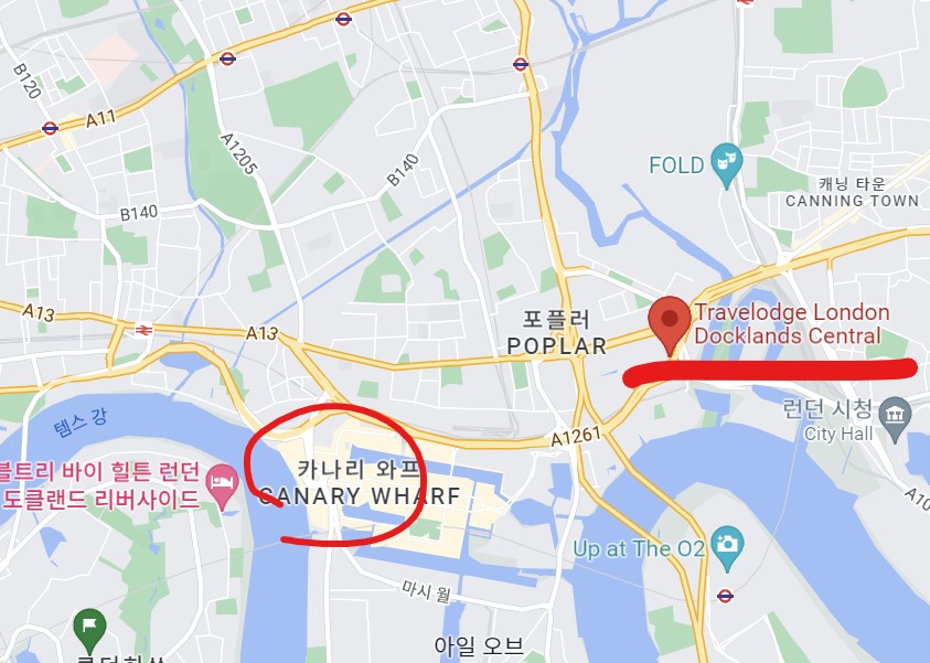 동쪽 아래 캐닝타운과 카나리와프 걸어서 갈 수 있는 곳이구요
