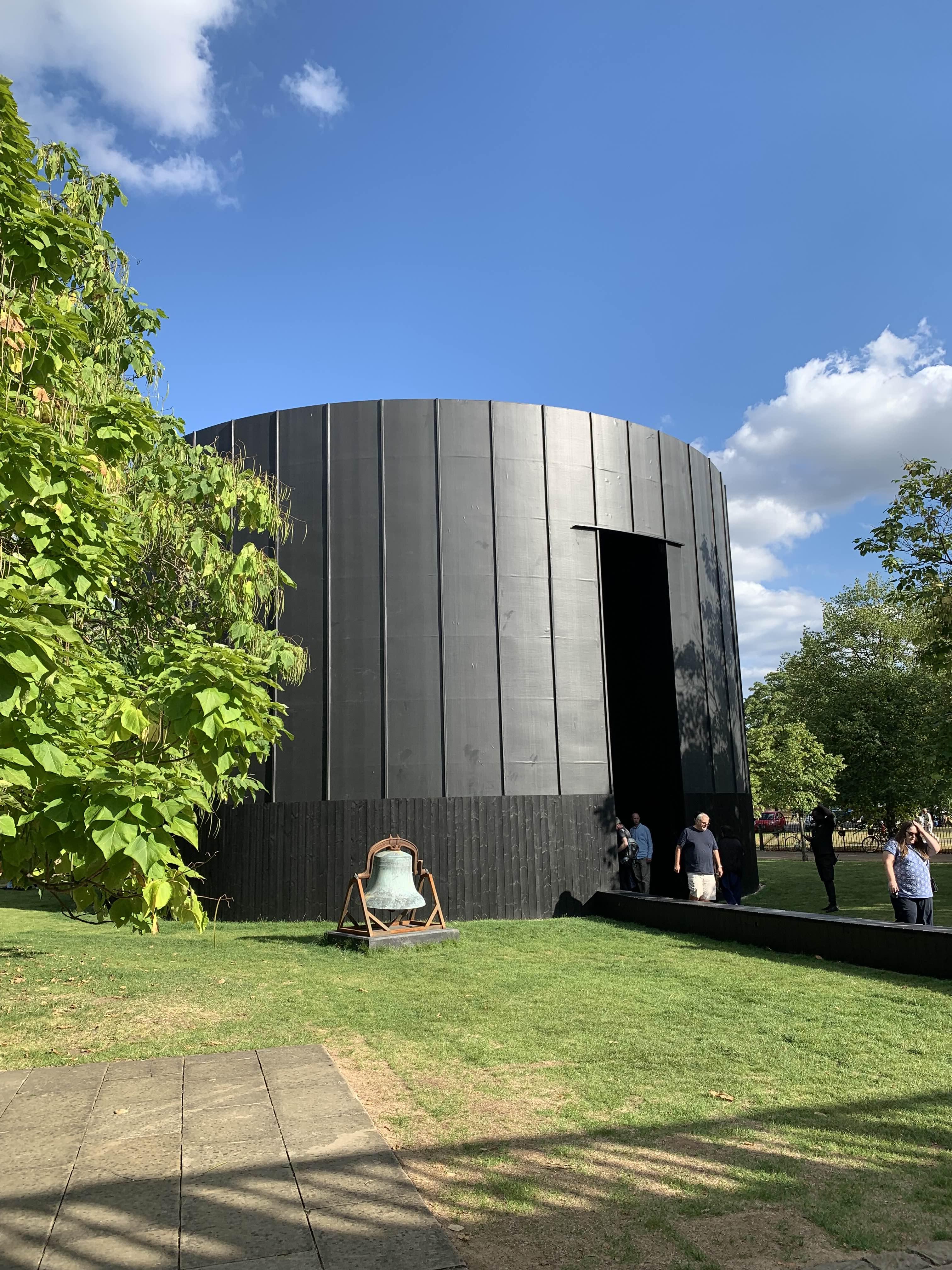 Chicago artist Theaster Gates has unveiled the cylindrical Black Chapel, as this year's Serpentine Pavilion in London's Kensington Gardens.