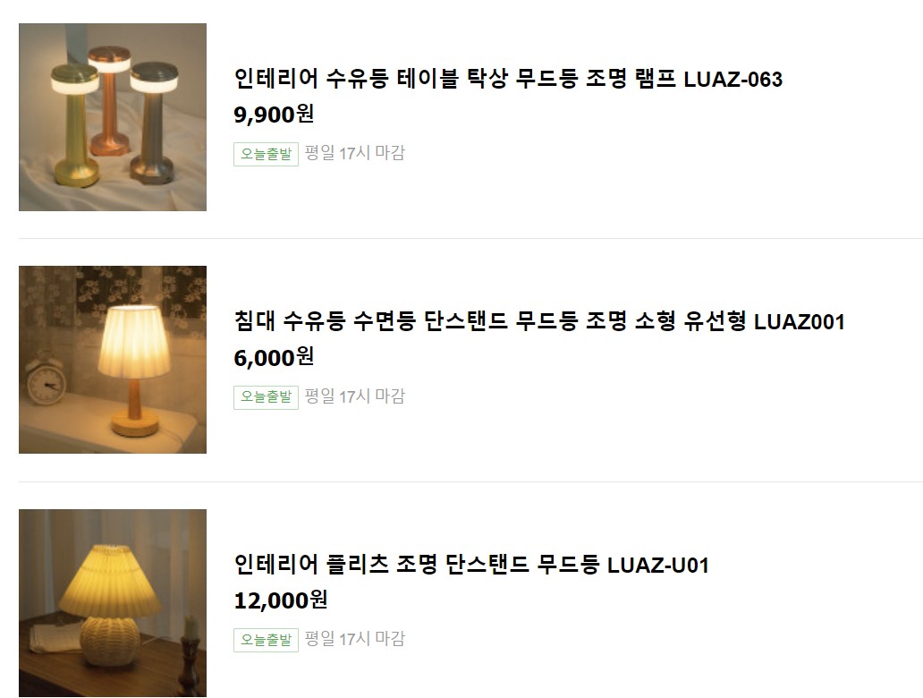 이 무드등 뿐만아니라 다른 조명들도 가격이 저렴한데에 비해서