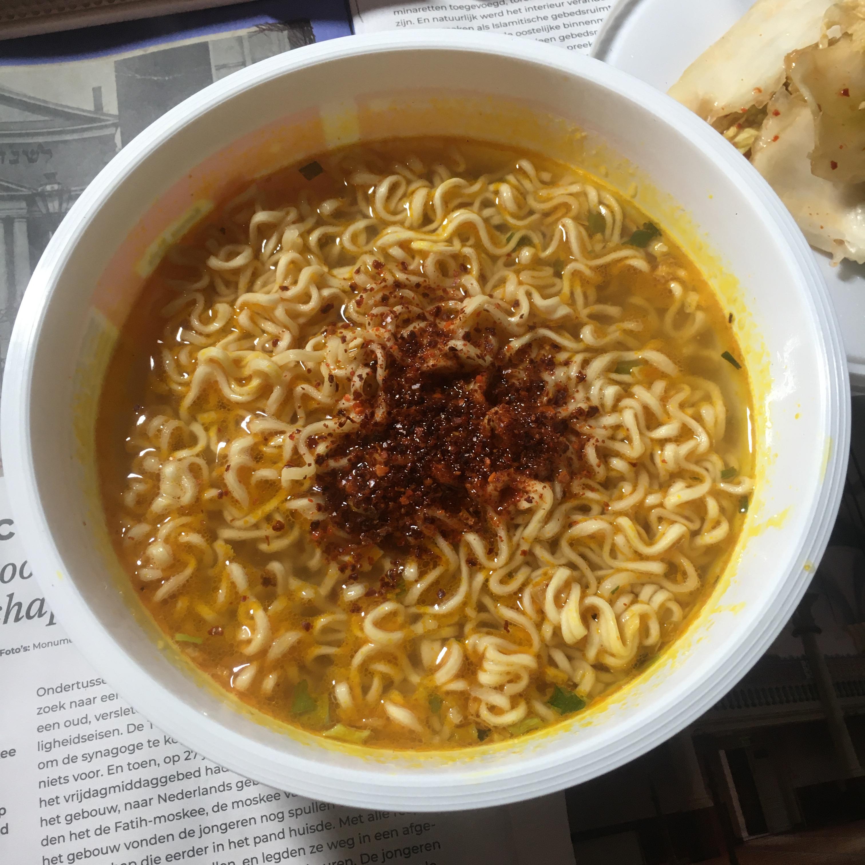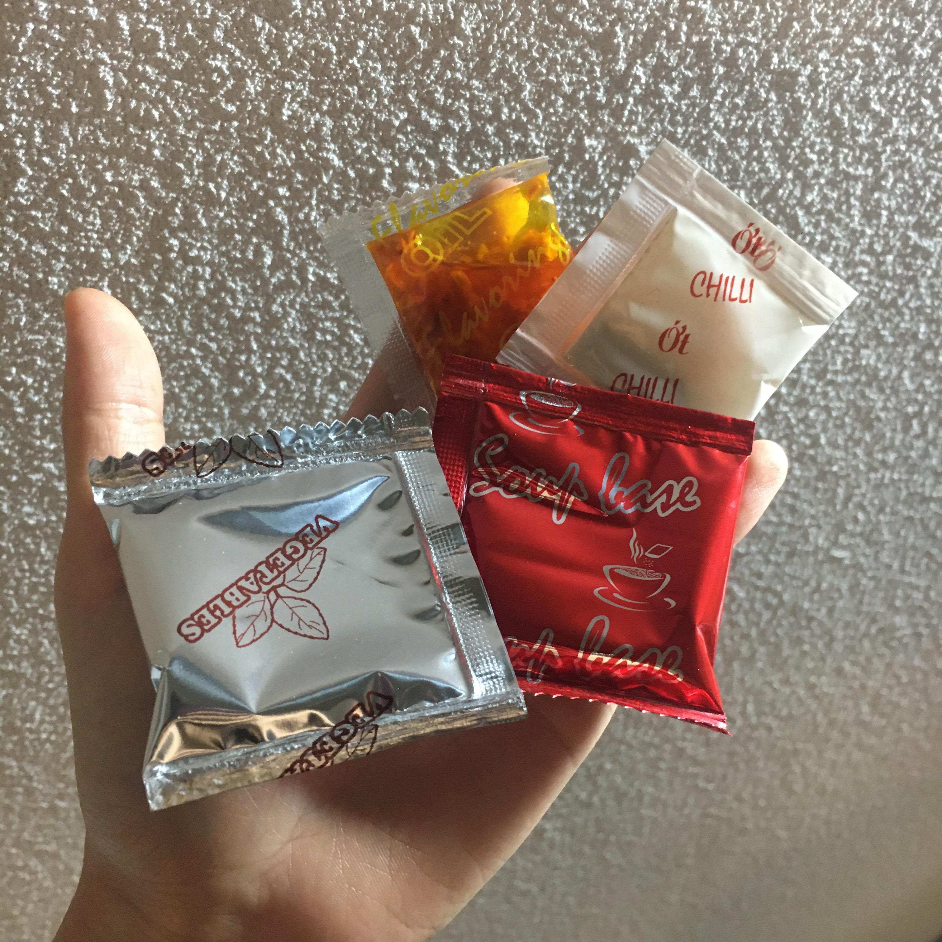 구성은 수프,건더기,고추기름,그리고 노란색의..강황? 뭔지 모를것이 들어있었음