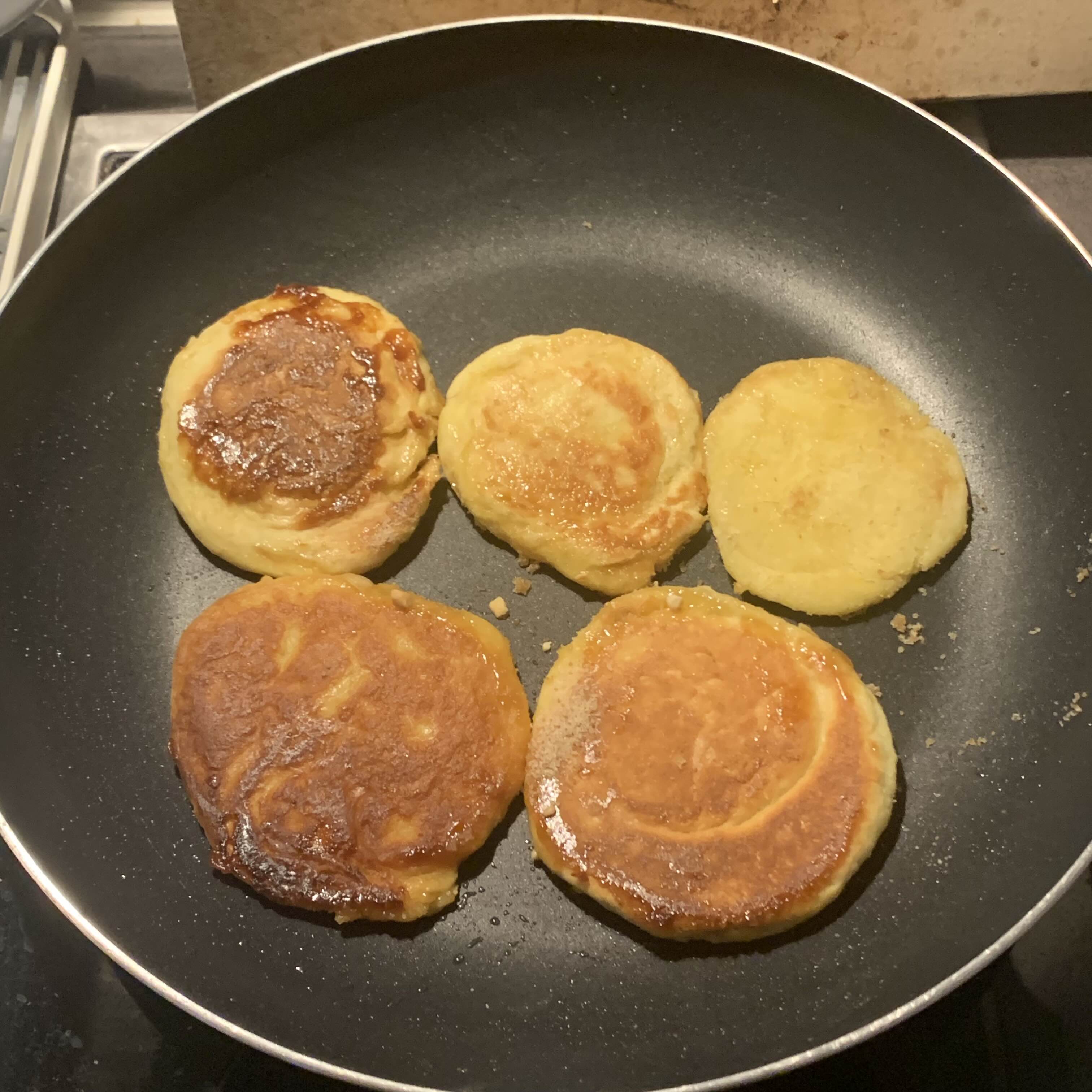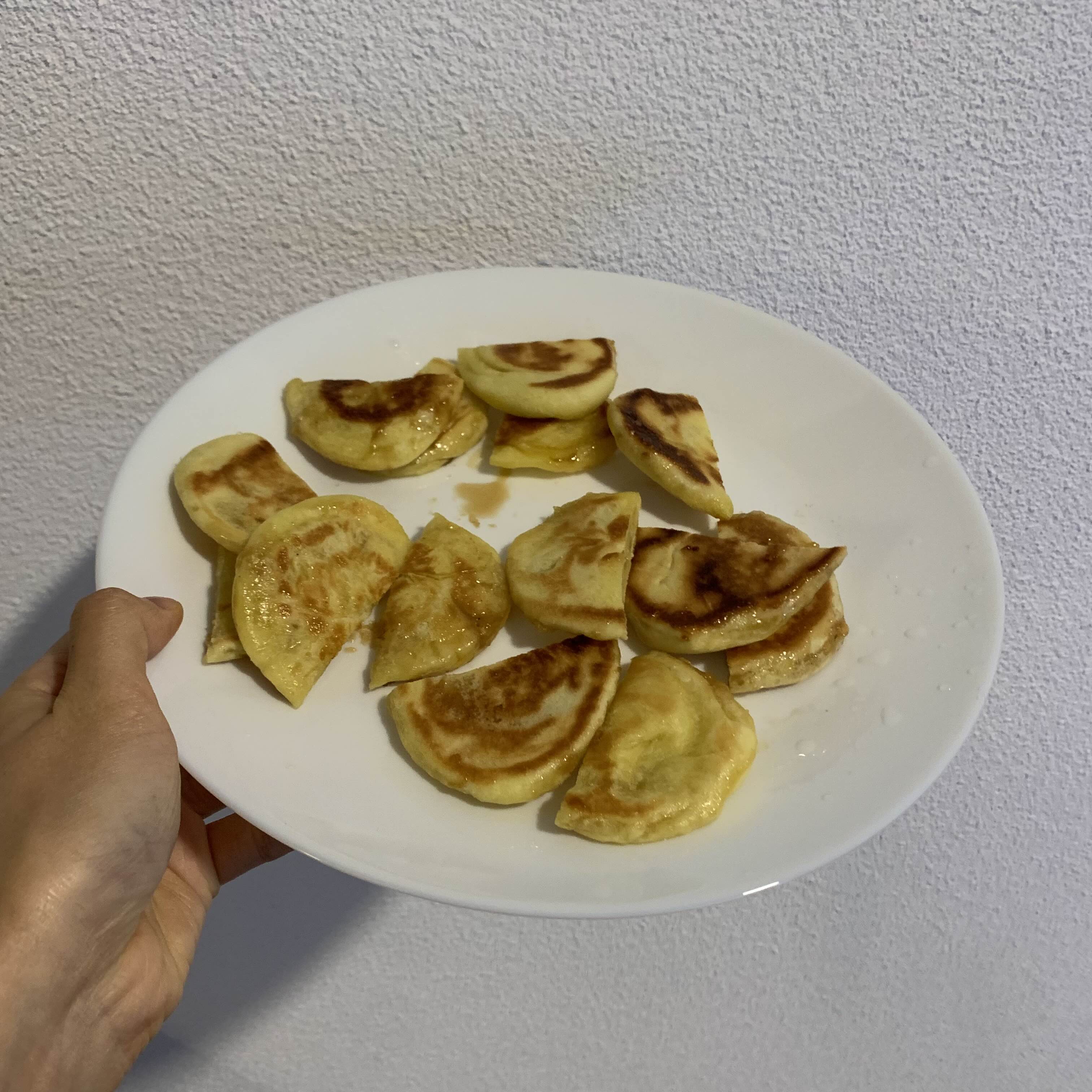 예열된 프라이팬에 오므려진 부분을 아래로 향하게 하여 약한불로 굽다가 노릇노릇해지면 뒤집어서 뒤집게로 눌어 1-2분 더 구워주세요 - 그리고 다시 뒤집어서 1-2분 구워주시면됩니다.