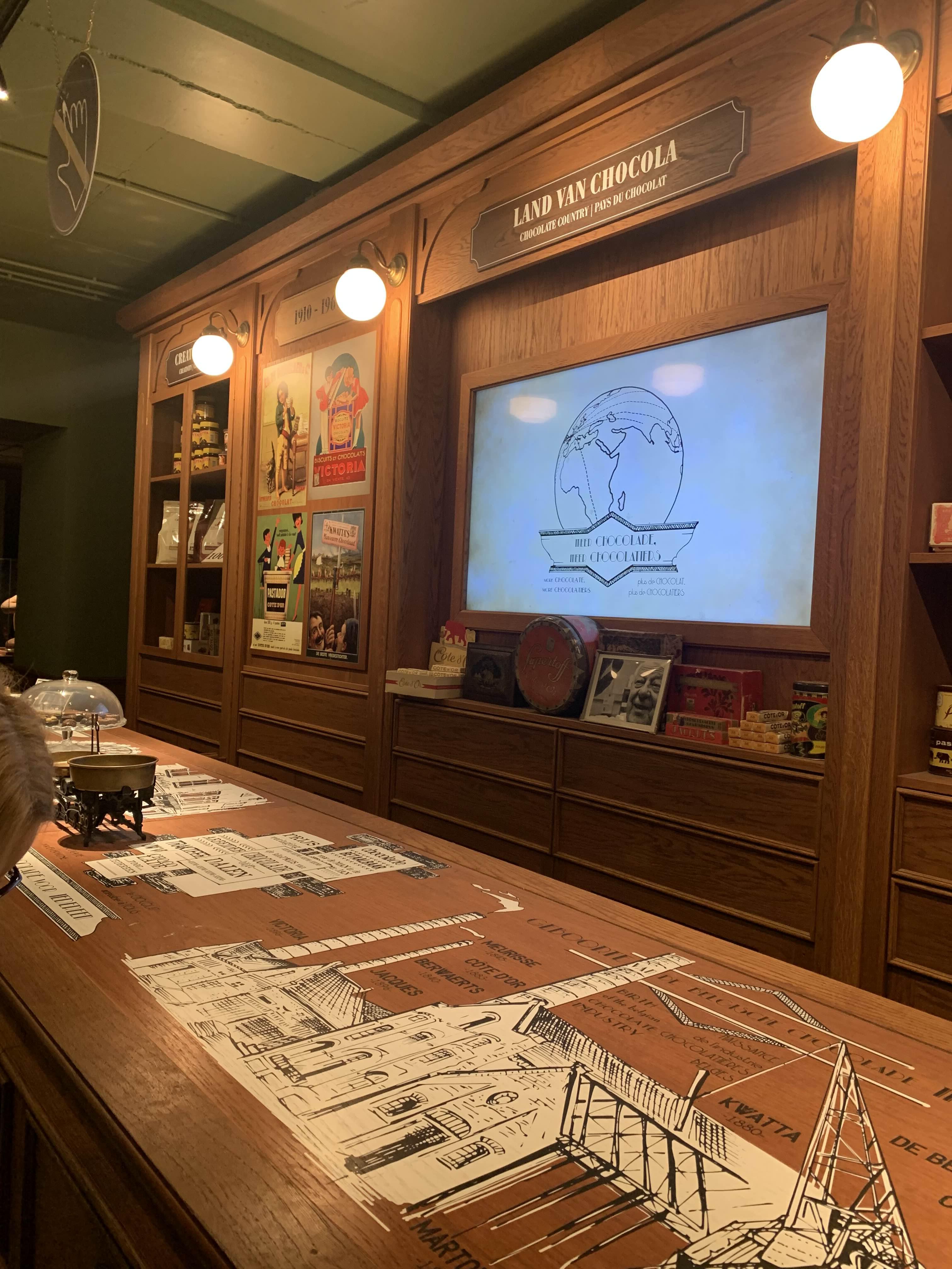14개의 테마별 방에서 60~90분 동안의 여행으로 벨기에 초콜릿의 이야기를 들려드립니다. 투어는 적도의 코코아 농장에서 시작하여 코코아 콩을 따라 앤트워프에 있는 세계 최대의 코코아 저장 항구로 이동합니다. 거대한 판타지 기계는 초콜릿이 어떻게 만들어지고 벨벳처럼 부드러운 맛이 어디서 나는지 보여줍니다.