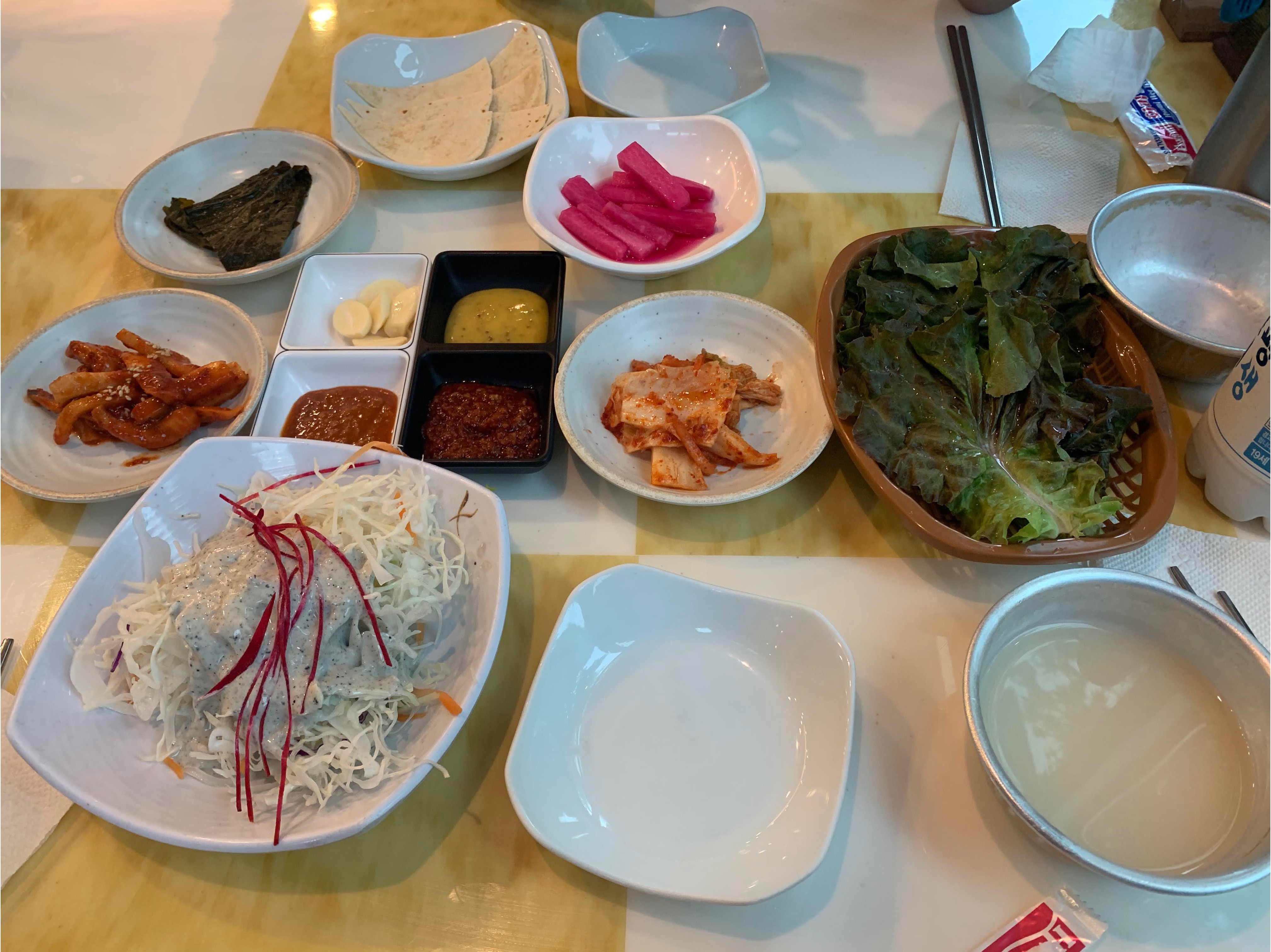 밑반찬도 무한리필이 가능합니다. 그러나 훈연과정으로 인해 고기의 부드러움이 조금 덜하고 지방의 풍미가 떨어질 수 있으므로 고기를 즐기는 분들은 참고하시기 바랍니다.