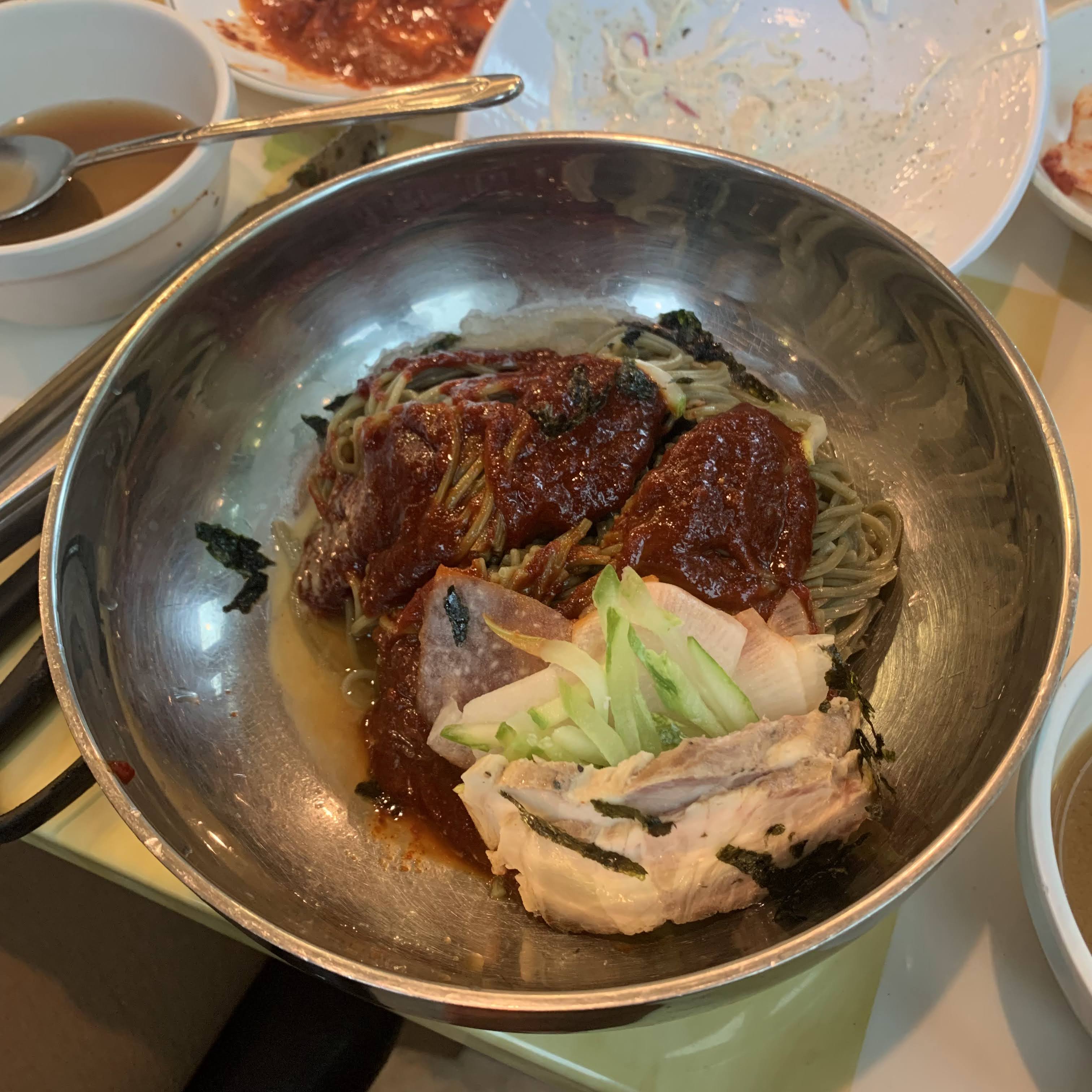 막국수는 한 그릇 시키면 두 명이 함께 먹을 수 있는 양이 충분합니다.